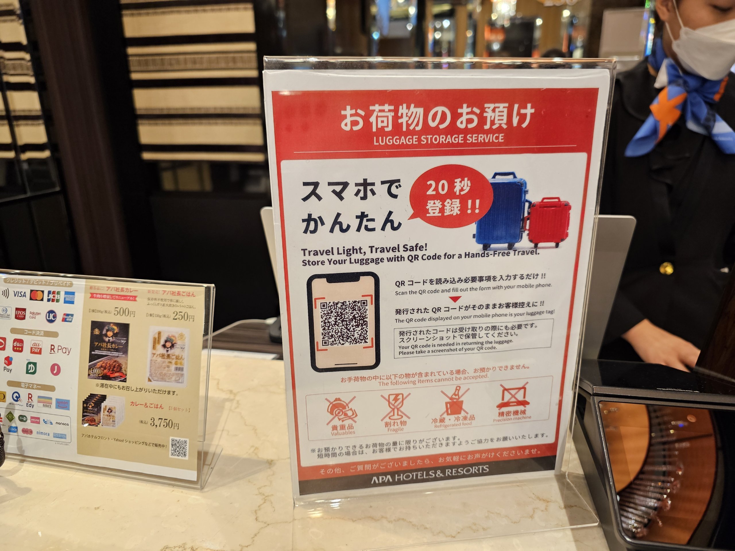 For at få bagagen opbevaret skal jeg scanne QR-koden, udfylde mit navn og efternavn og vise QR-koden igen i receptionen, når jeg henter den.