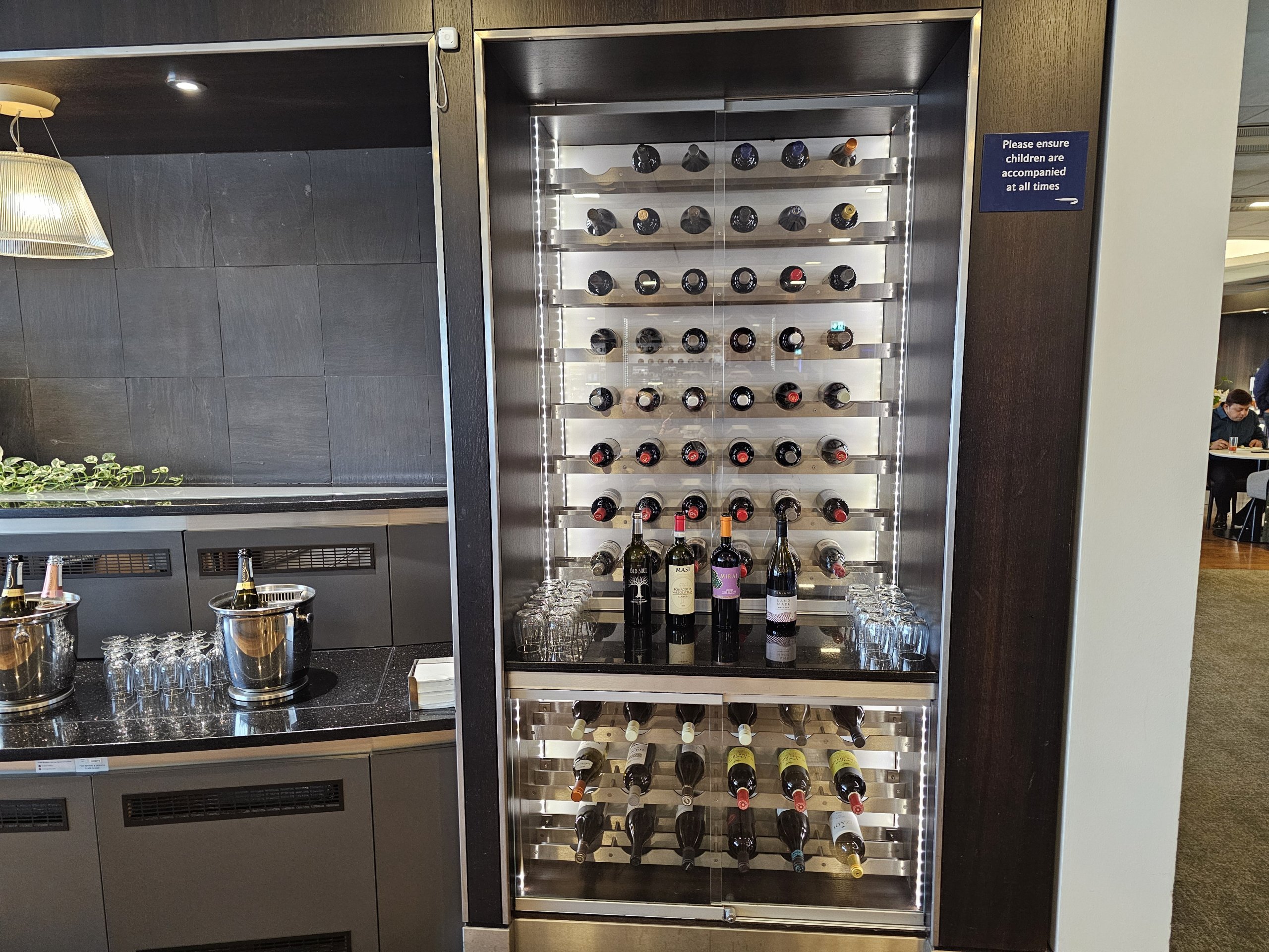Sammenlignet med de andre lounges i Terminal 3 har den det bedste børneområde. Men selv det er relativt lille og vil højst kunne underholde børnene i et par dusin minutter.
