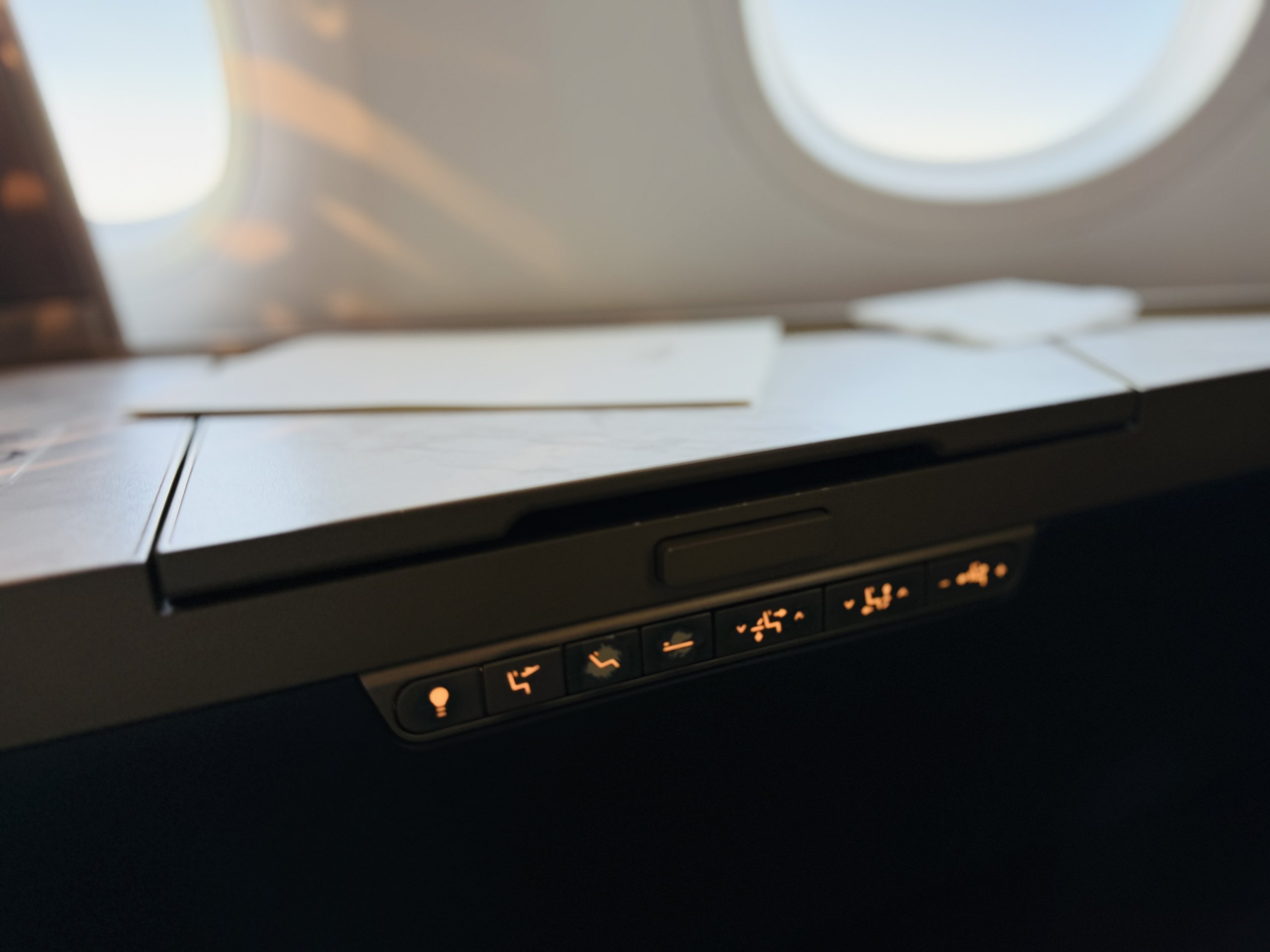 Der er også opbevaringsrum, hvor du kan finde vand uden kulsyre og hovedtelefoner i fuld størrelse ved ombordstigning.