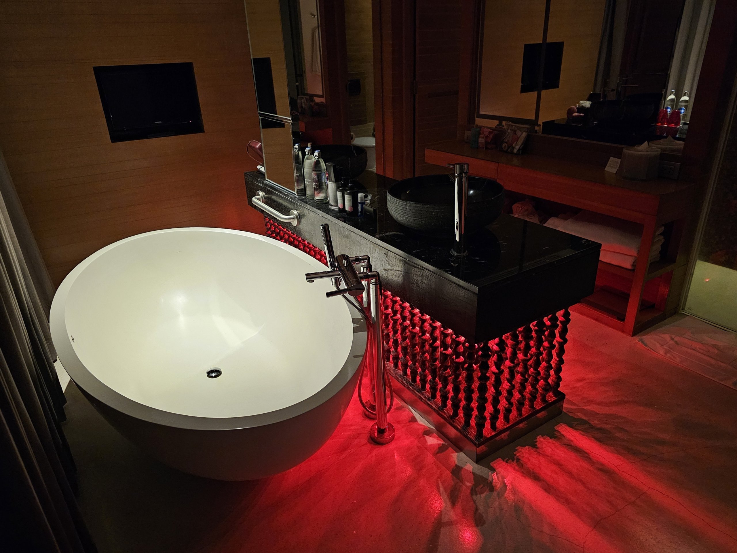 Hotel W er "global luksus". Hvis du gerne vil have en mere thailandsk stemning og mindre virksomhedsprægede omgivelser, kan et mindre boutique-resort eller en villa uden for de store hotelkæder være mere passende.