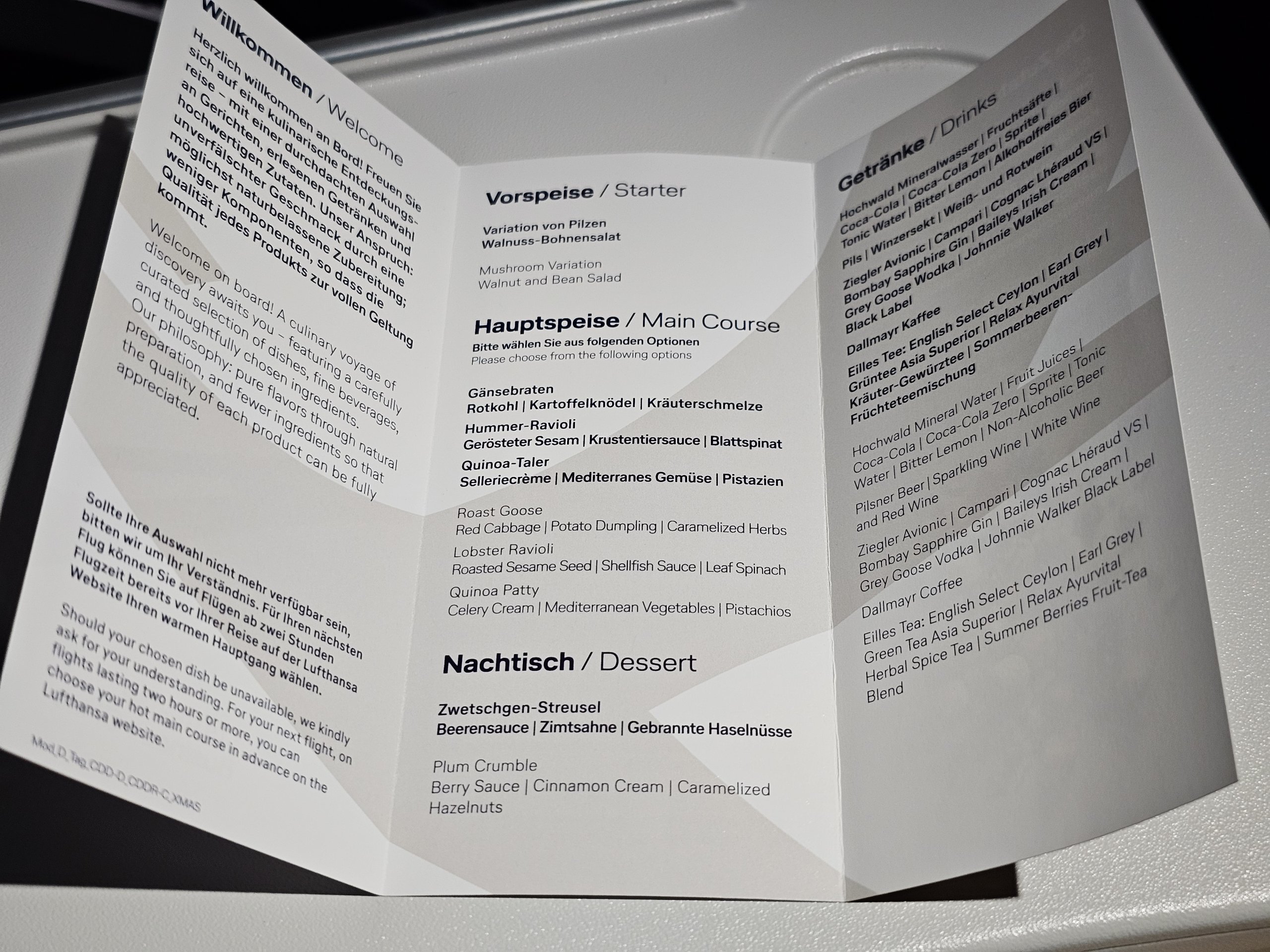 Men jeg var især interesseret i at se, hvordan Lufthansa ville klare sig i forhold til den ikke helt moderne business class hos Egyptair, som jeg brugte i den modsatte retning 3 uger før denne flyvning.