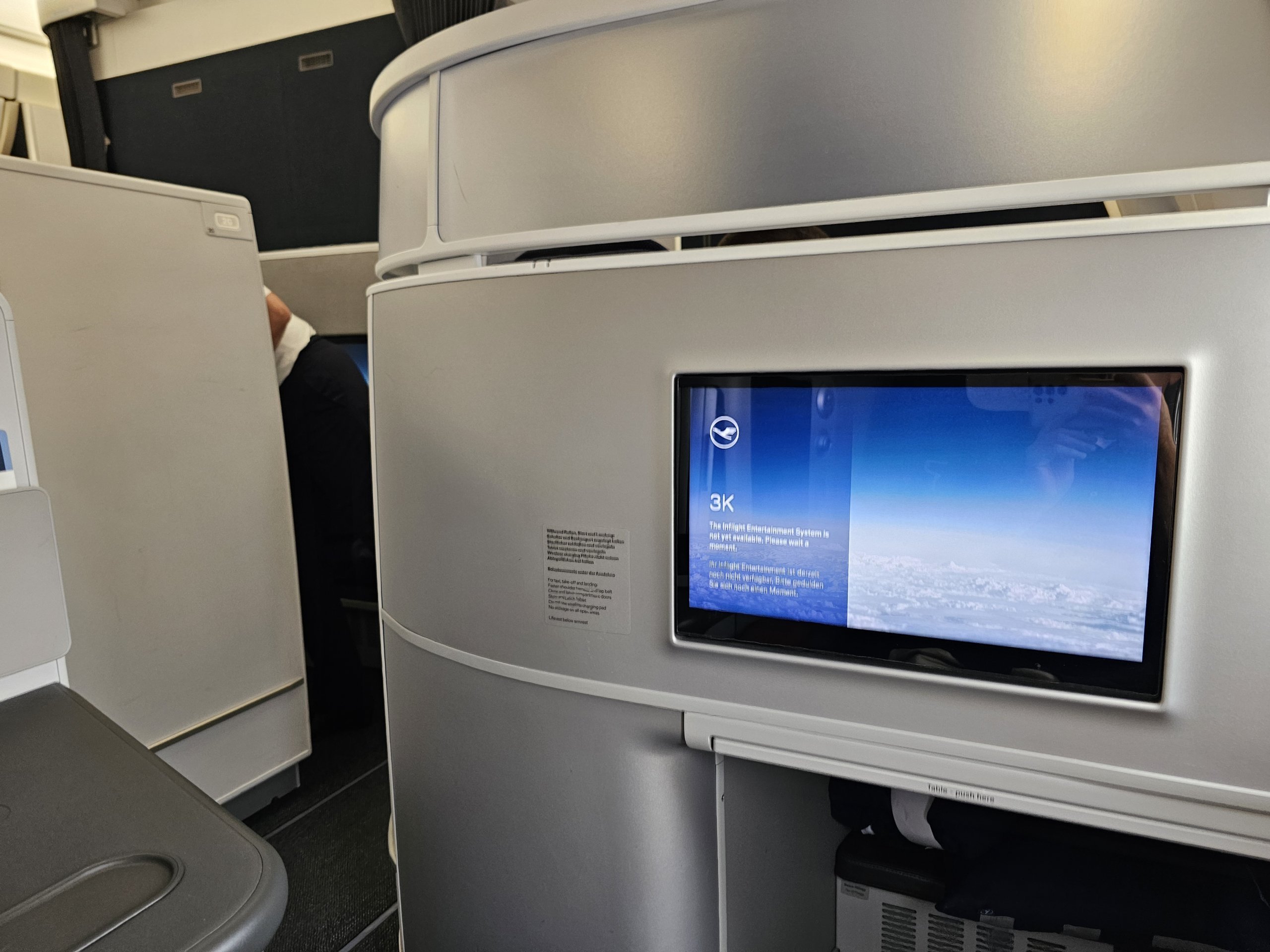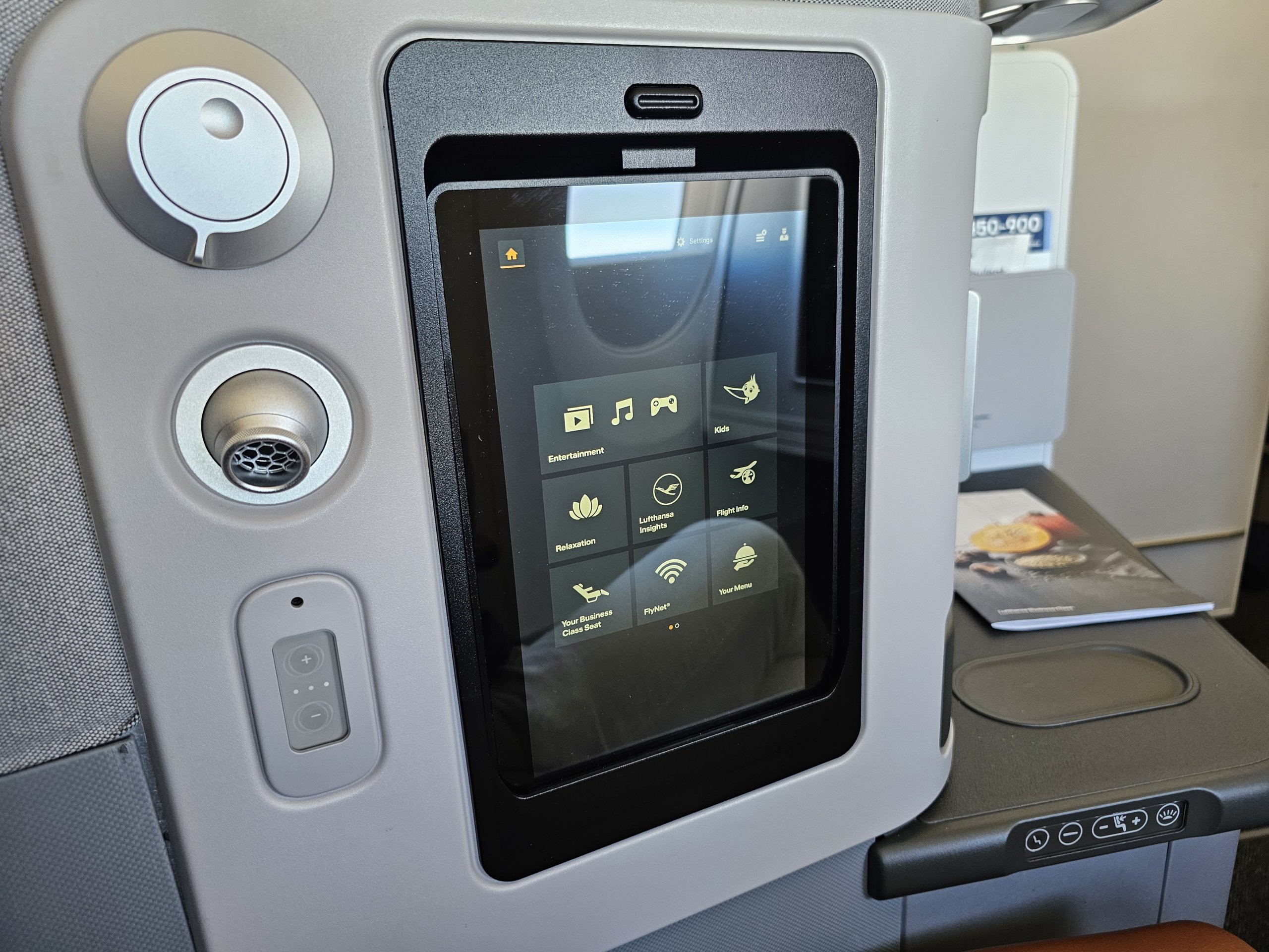 Skærmen med 4K-opløsning er fantastisk. Betjeningen sker enten via en touchscreen direkte på skærmen eller via en tablet ved sædet, så man kan styre IFE med sædet tilbagelænet eller fra sengen.