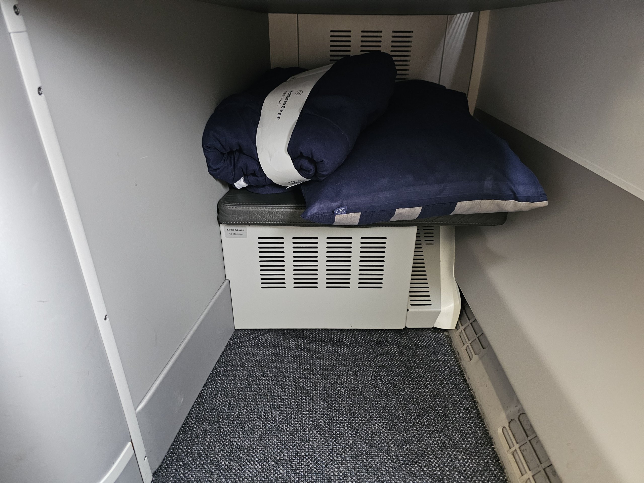 Det mangler sengetøj, men det plejer kun at være standard på natflyvninger.