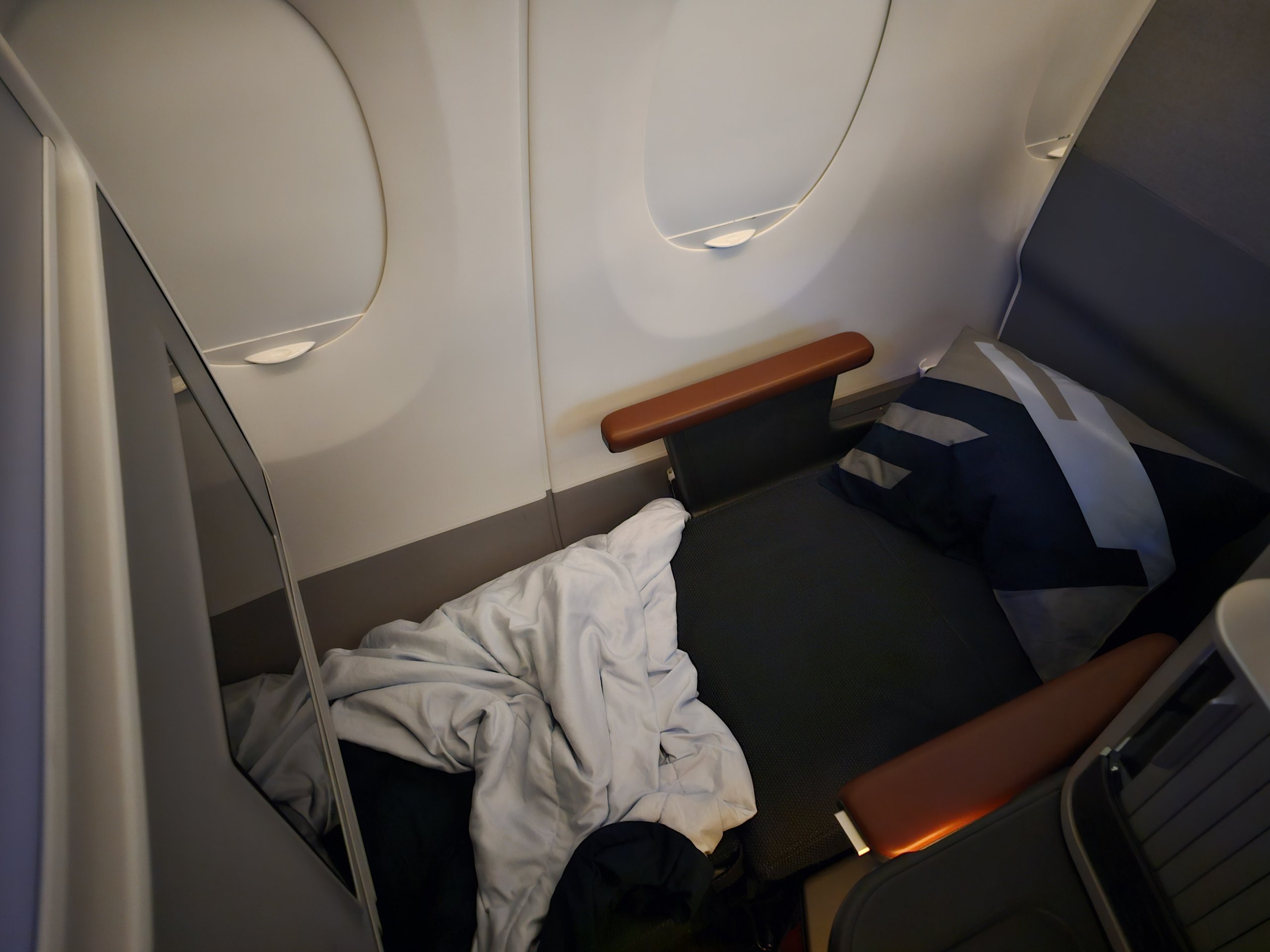 Selvom det var en dagsflyvning, var jeg nødt til at prøve sengen på business class.