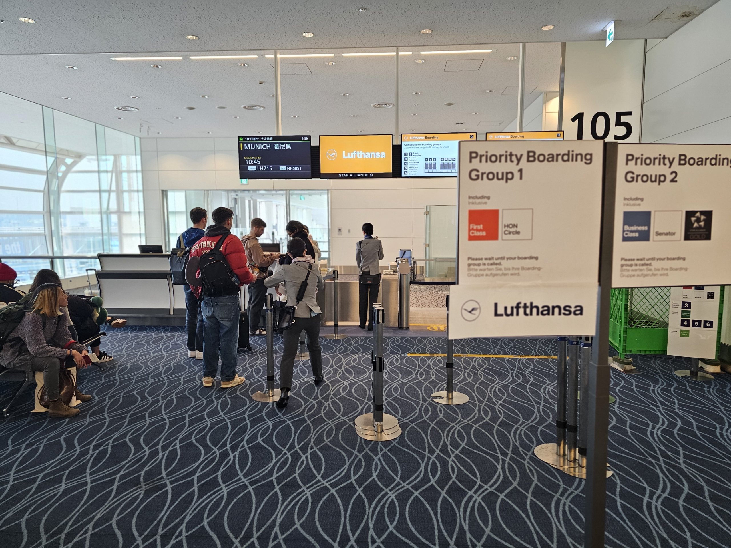 Da jeg har to store kufferter, er jeg nødt til at gå til check-in-skranken. Desværre har Lufthansa ikke automatiske skranker i Haneda lufthavn, så jeg er nødt til at vente, indtil check-in-tiden starter.