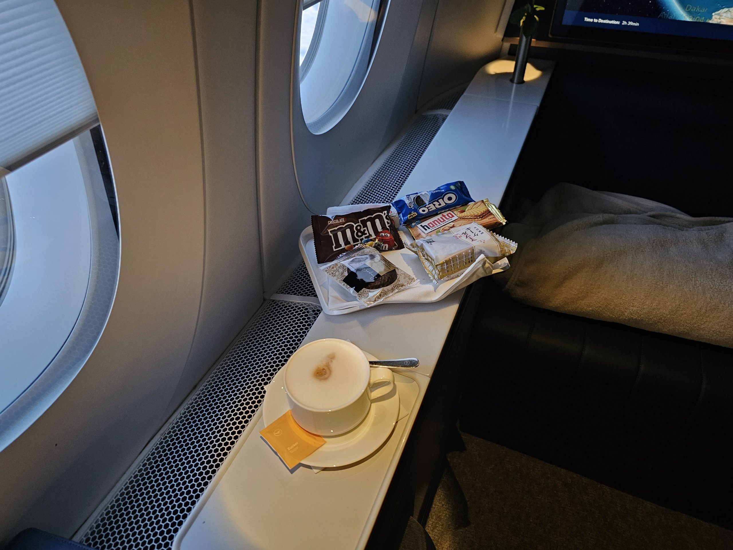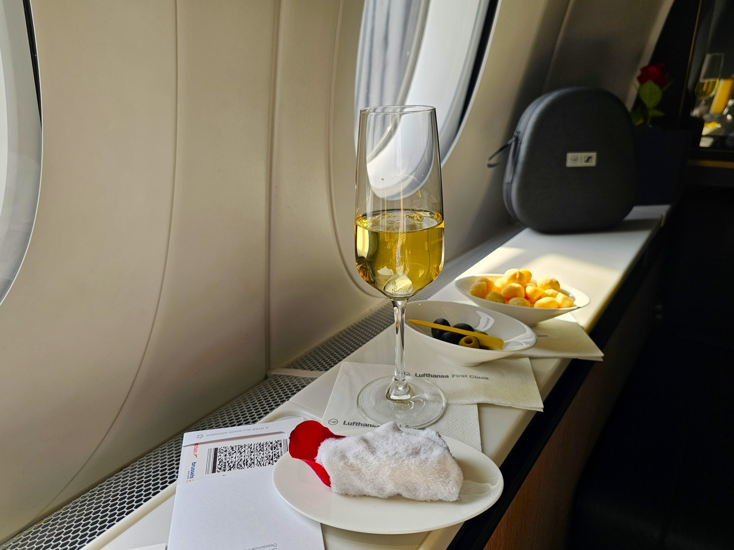 Morgenmadstilbuddet er lidt svagt, men det er fint med mig, for jeg ved allerede fra flyvninger fra Frankfurt til Japan, at First Class-servicen på Lufthansa er mere end tilstrækkelig.