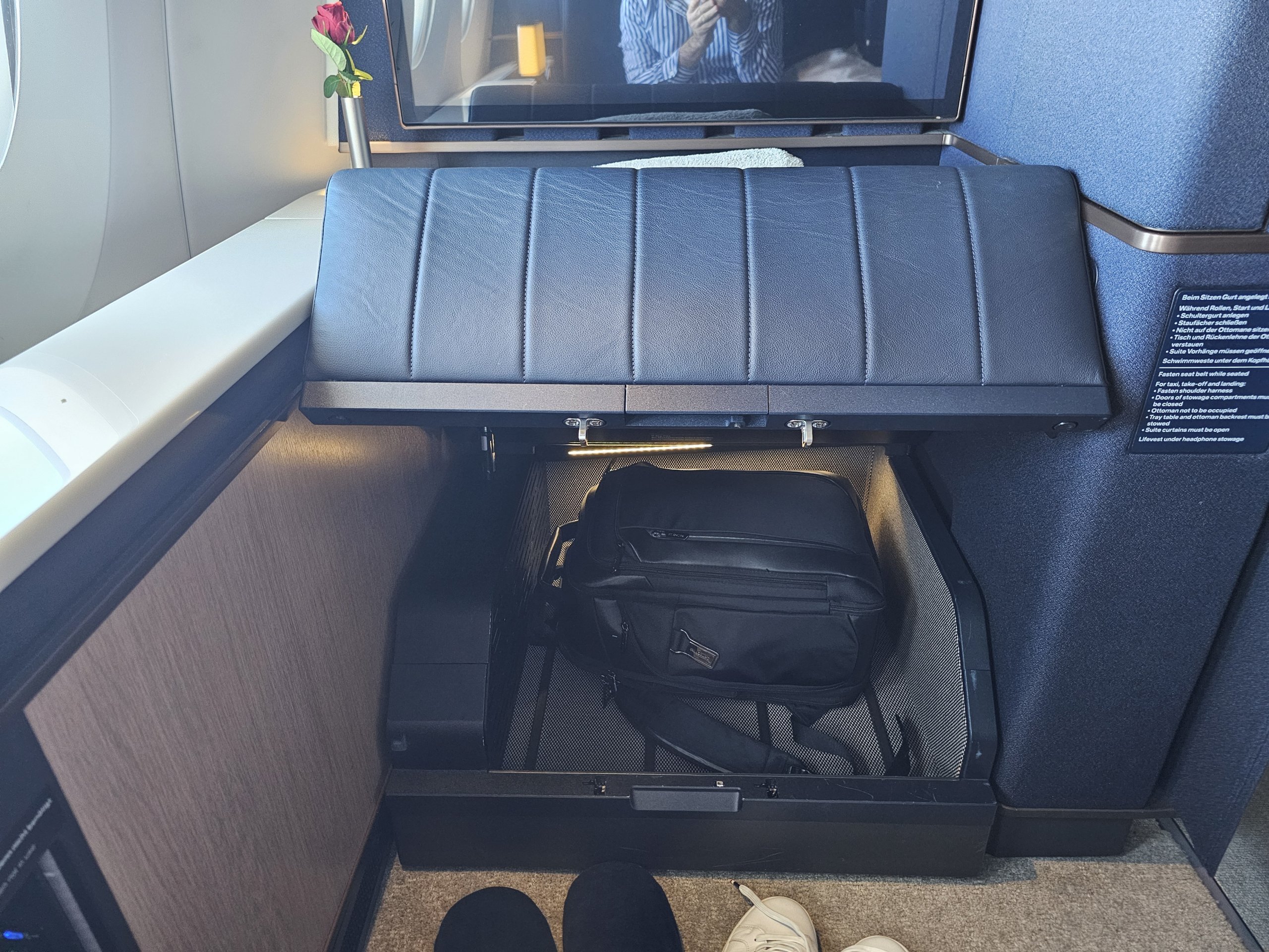 Sammenlignet med sæderne på den gamle First Class er der lidt mindre opbevaringsplads. Det er dog stadig en relativt tilstrækkelig mængde.