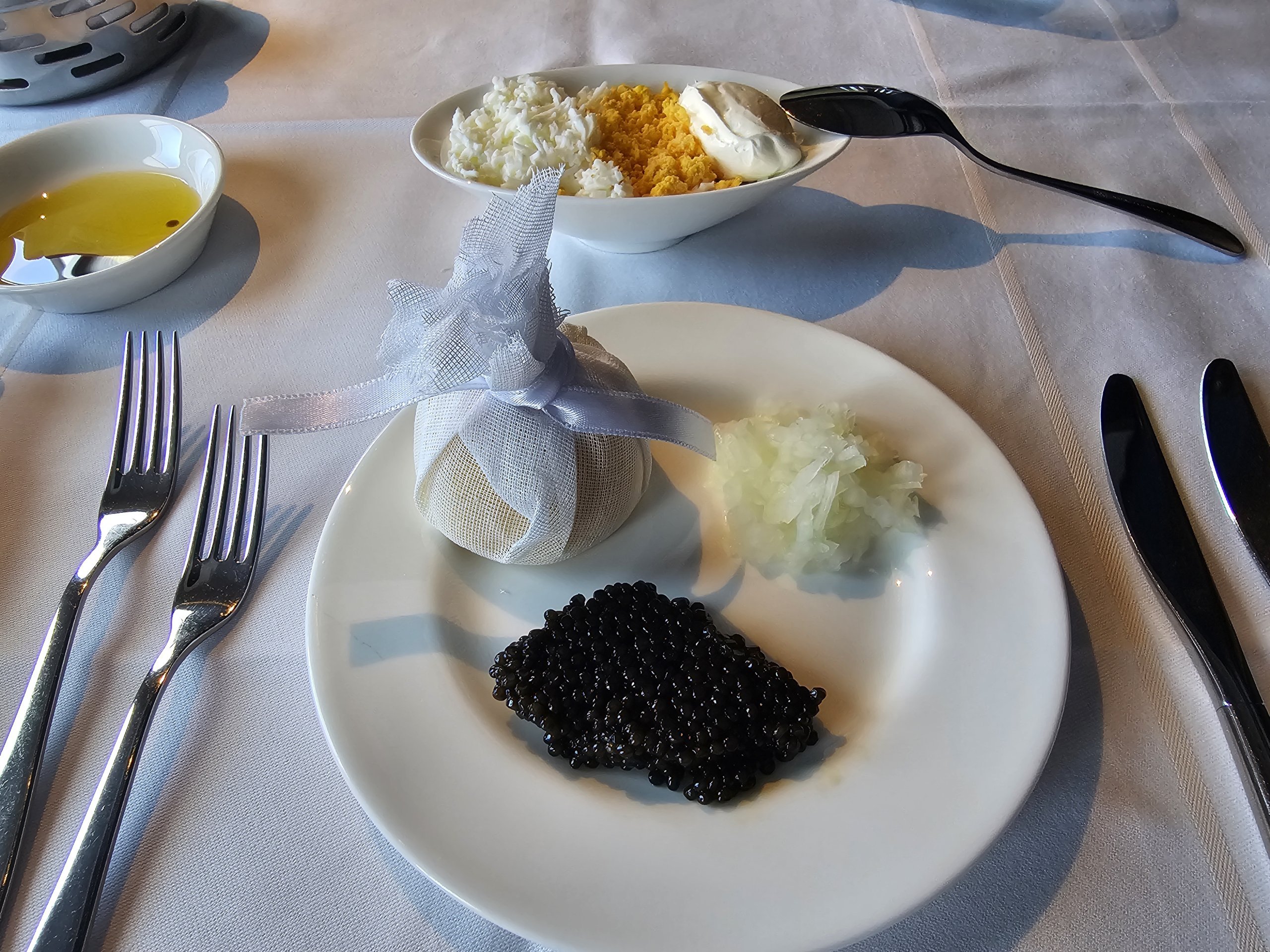 Allerede før hovedservicen kommer kaviaren - Lufthansas signaturprodukt på første klasse. Kaviarservice er simpelthen et koncept hos dette flyselskab, som alle almindelige passagerer og flyentusiaster kender til.