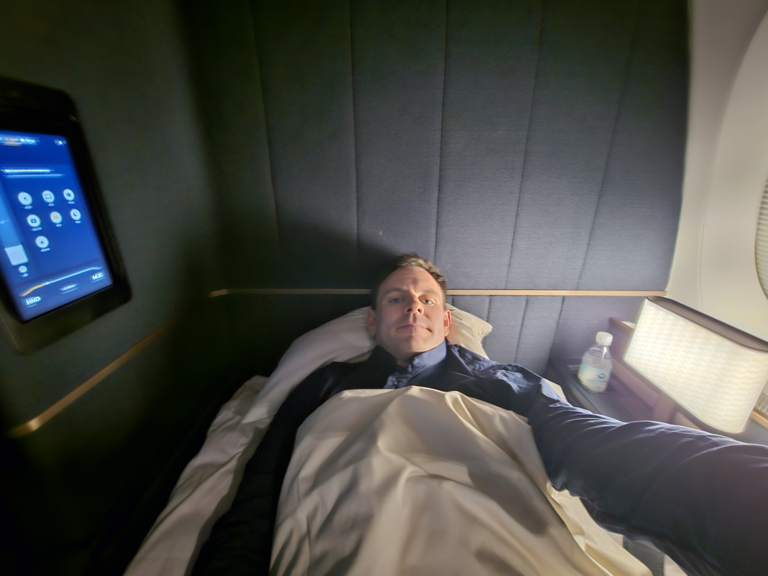 Jeg fløj dertil i det gamle produkt i en Boeing 747-8 og tilbage i den helt nye Allegris First Class i en Airbus A350-900.