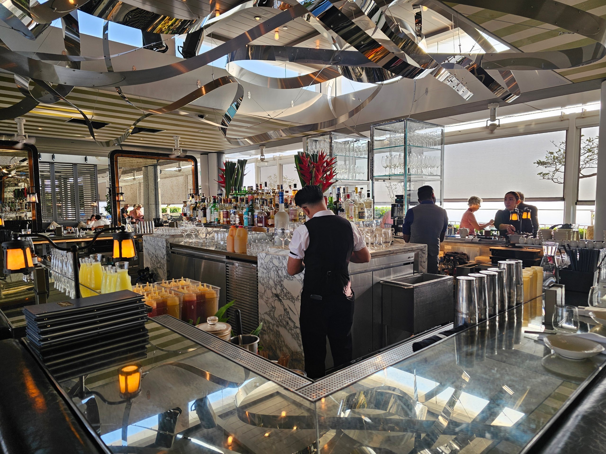 Morgenmaden serveres i Spago Bar lige ved den ikoniske pool på taget.