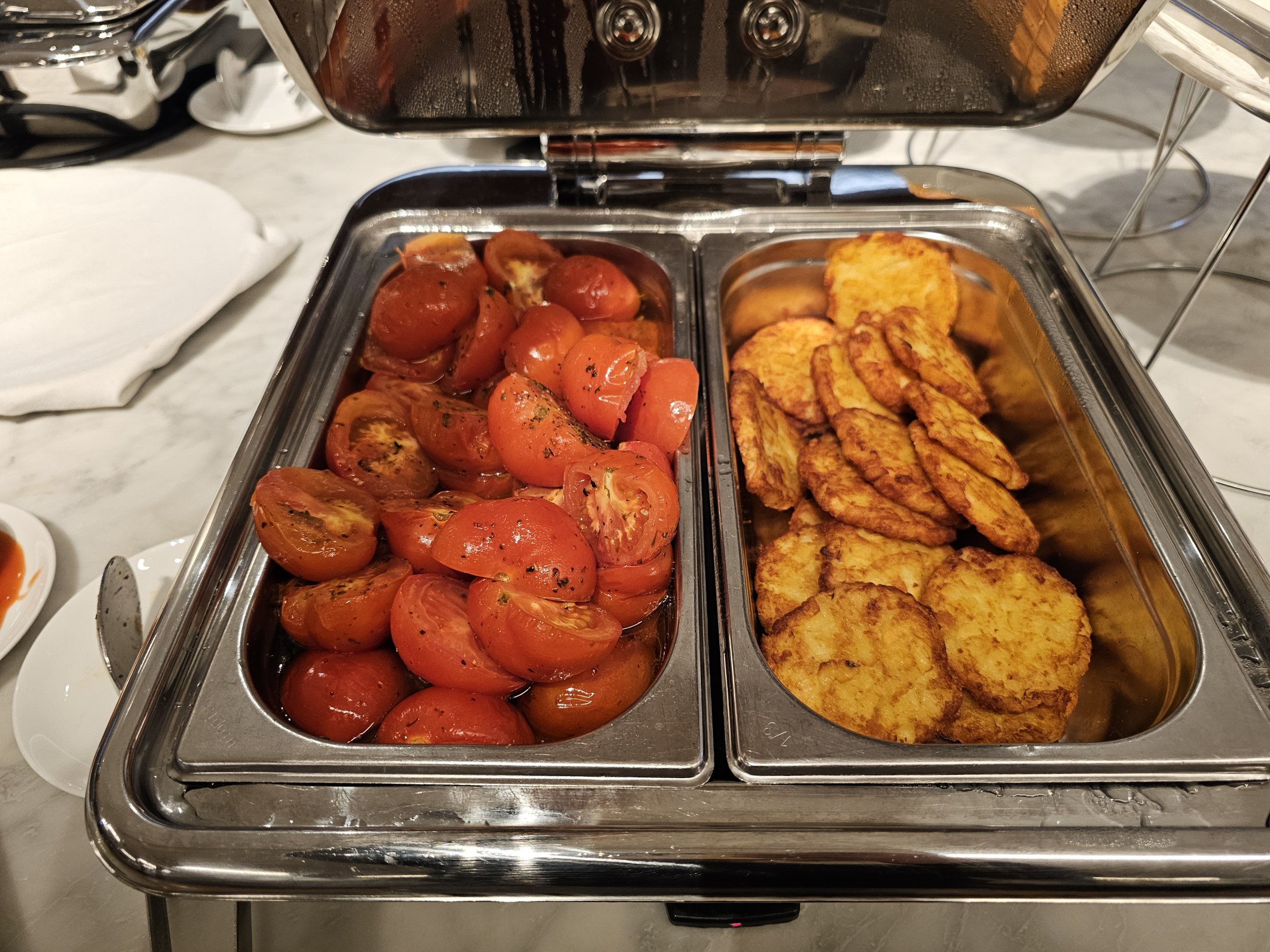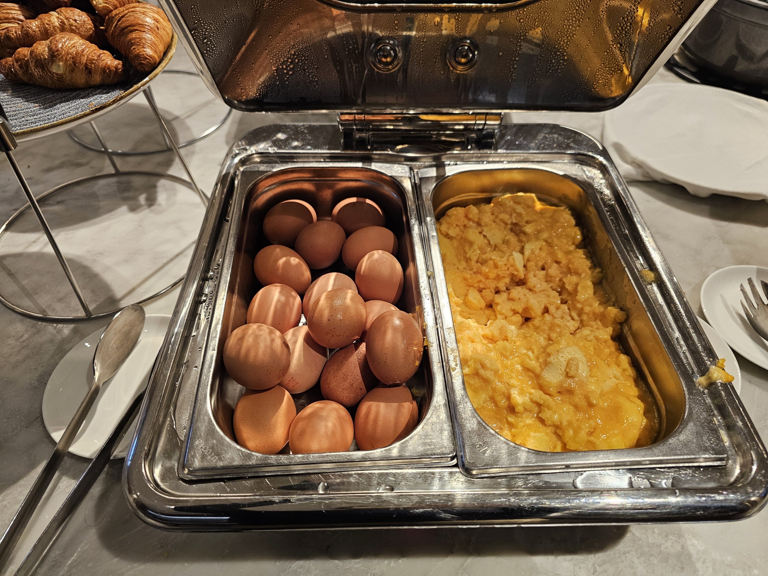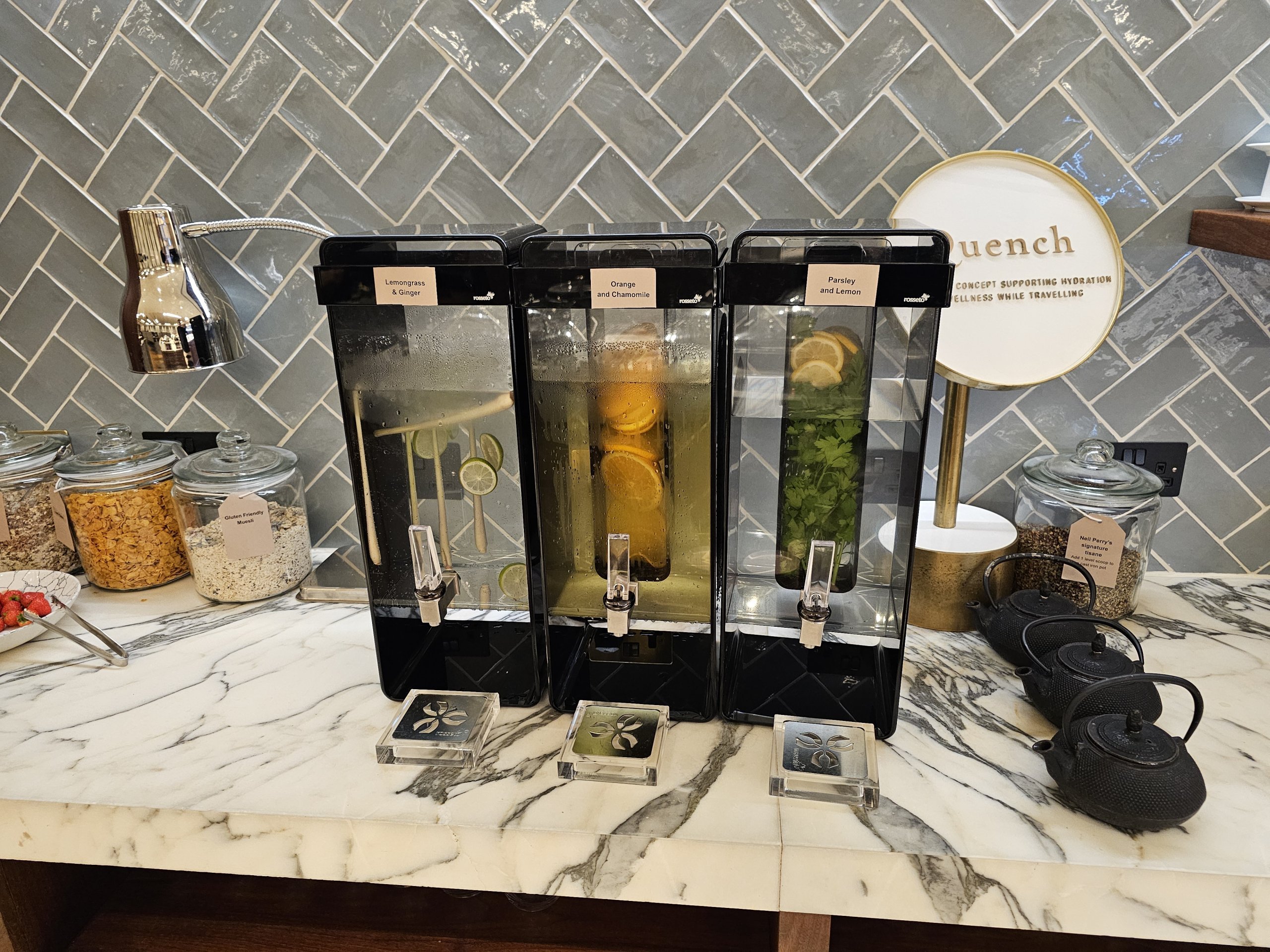 Der mangler dog helt diske med andre søde sager eller måske ost eller skinke. I det hele taget er madudbuddet ikke så omfattende som f.eks. i Cathay Pacific Lounge ved siden af.