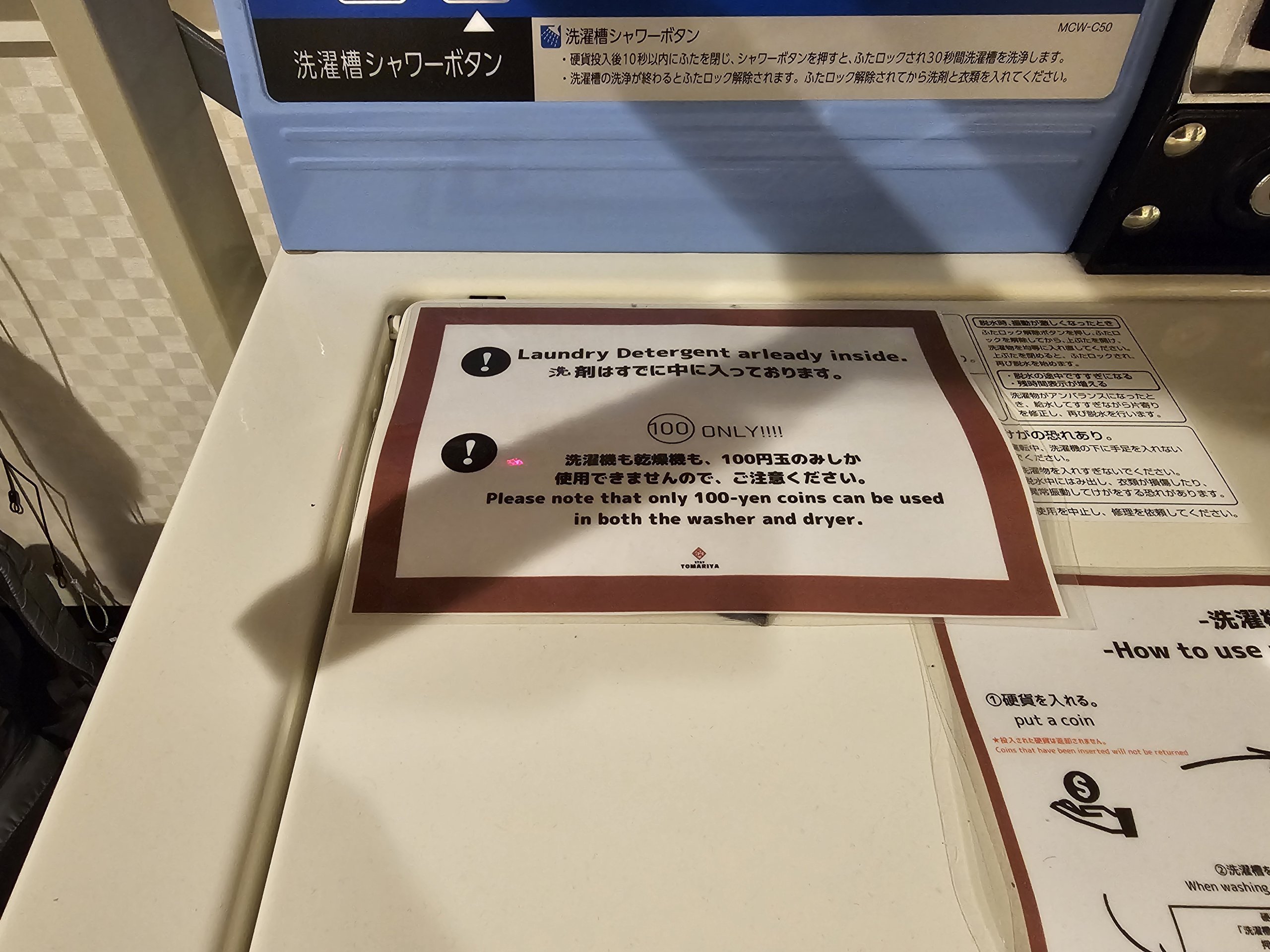 - vaskemaskine og tørretumbler (300 jpy - kan kun betales med 100 yen-mønter)