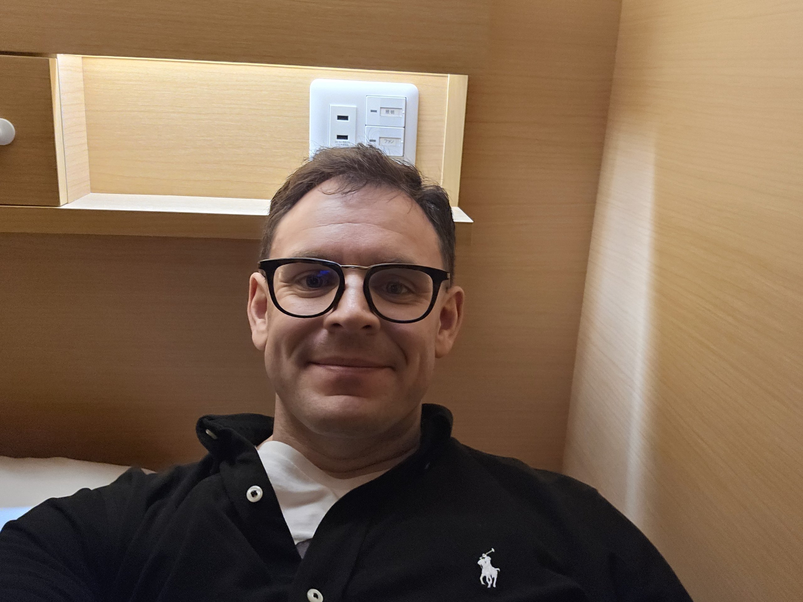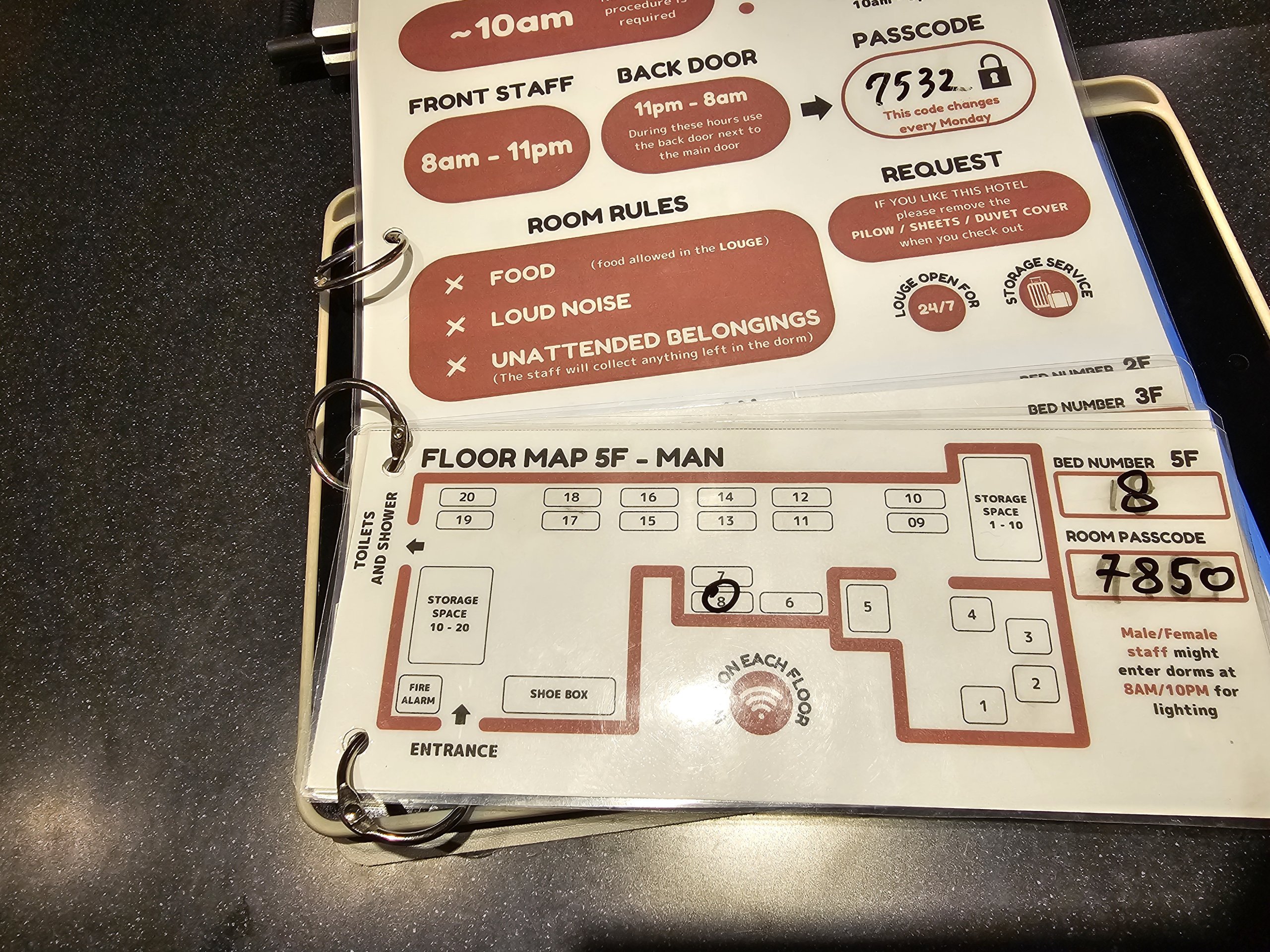 Jeg har kapsel nummer 8, som er den øverste køje. Jeg har ikke noget imod det, men hvis du ikke kan lide at klatre op ad stiger, anbefaler jeg, at du, når du booker via booking.com, skriver i din anmodning, at du vil have den nederste kapsel.