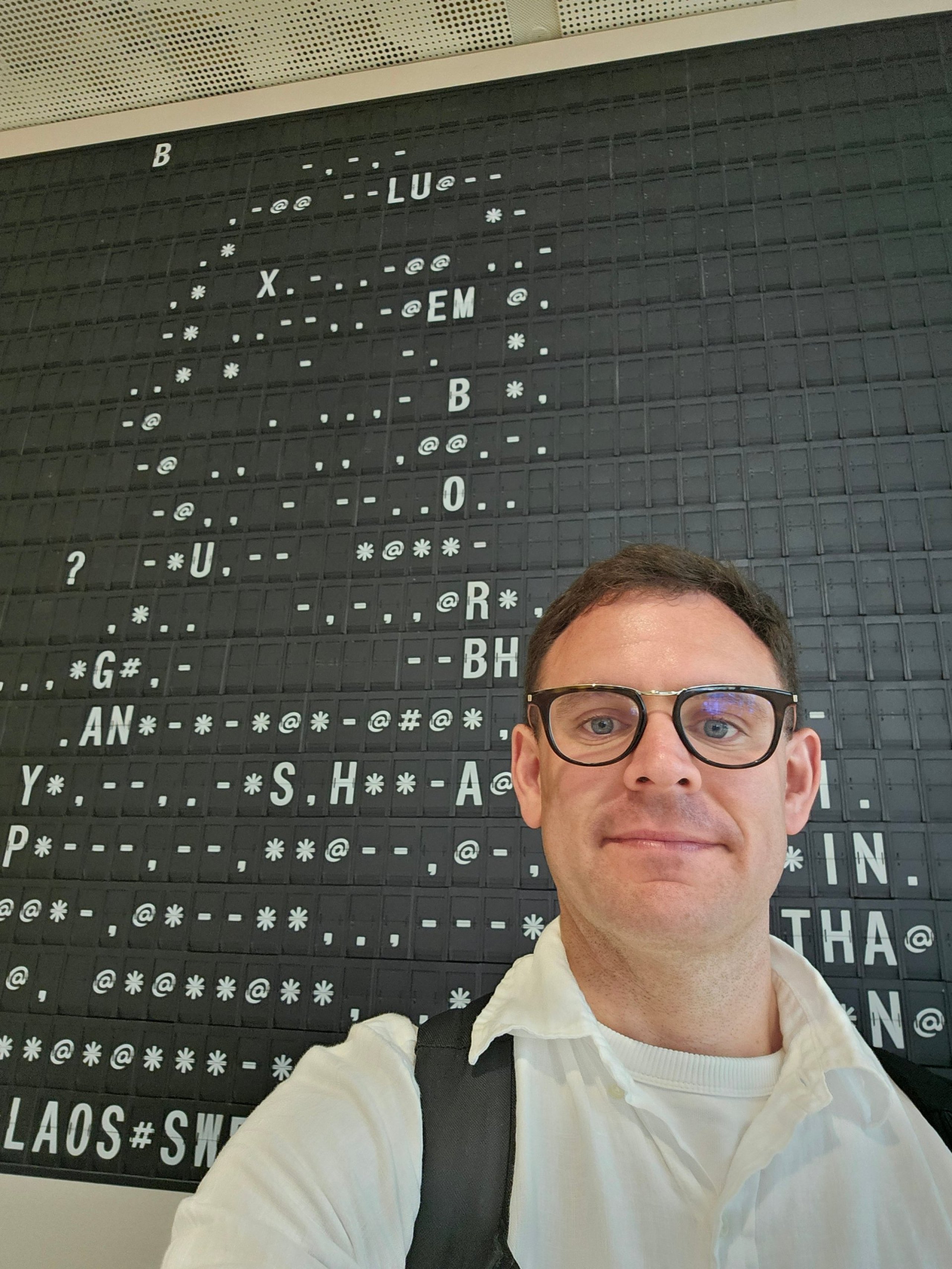 Du står foran en gammel afgangstavle, og den bruger flip-flops til at skabe dit omrids.