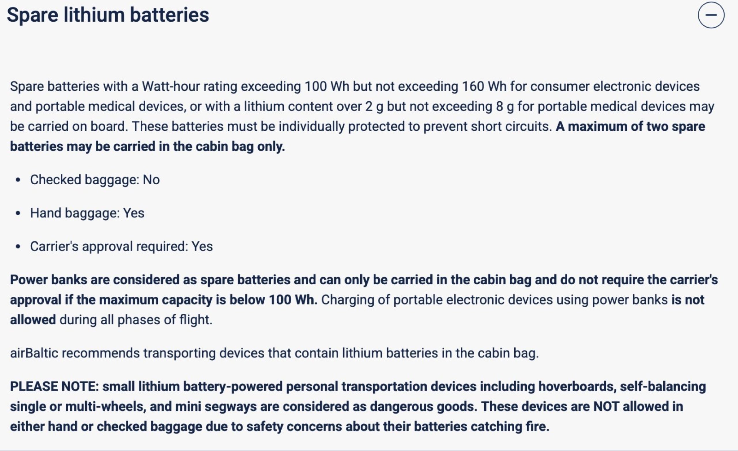 airBaltic forbyder også brug af powerbanks under flyvningen: https://www.airbaltic.com/en/bag...strictions