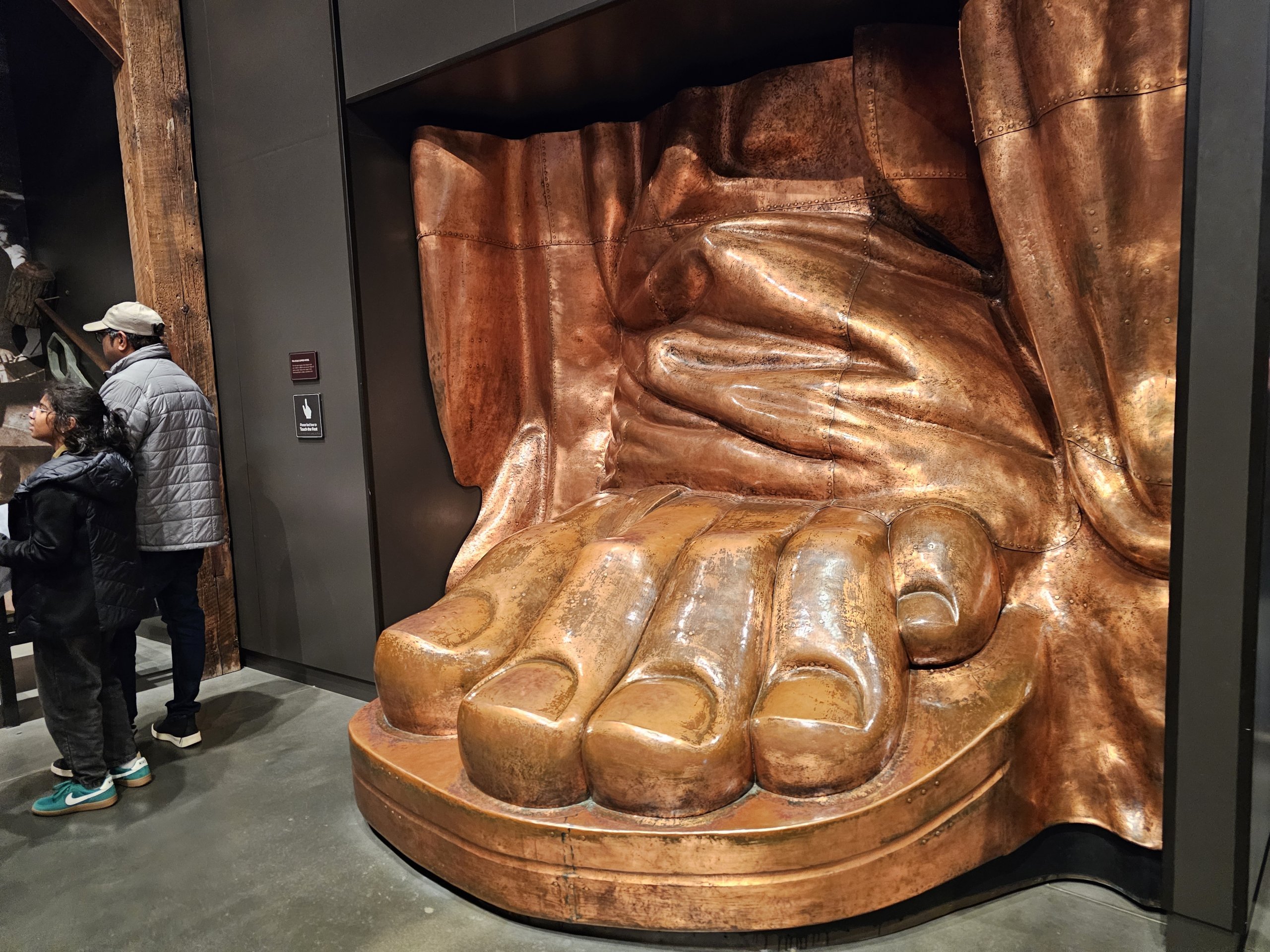 Direkte i piedestalen finder du et lille museum om historien bag opførelsen af Frihedsgudinden.