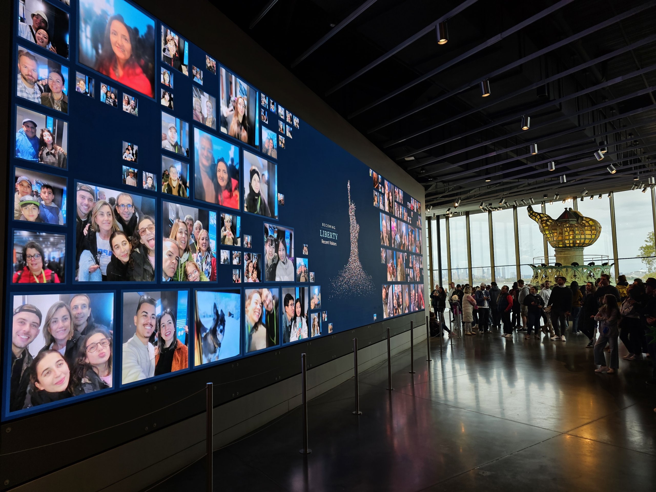I en moderne bygning nær kajen er der en gavebutik, en café, en restaurant og et andet museum med modeller af dele af statuen som f.eks. tæerne, faklen eller ansigtet.