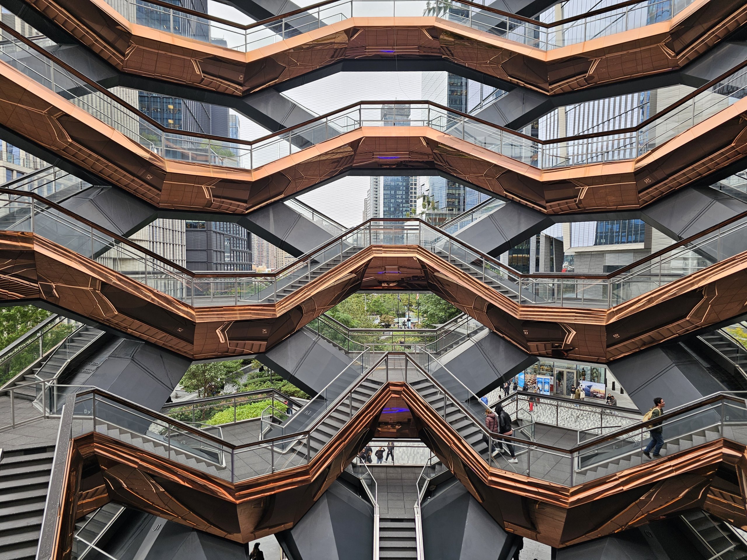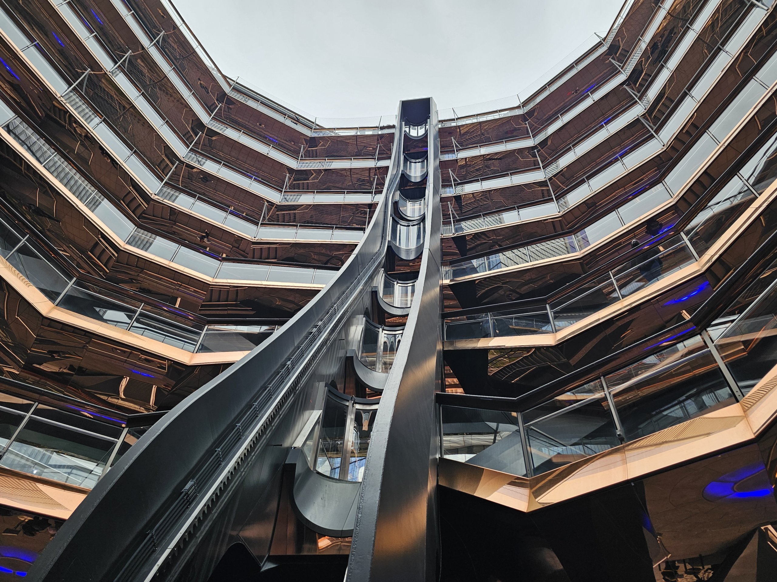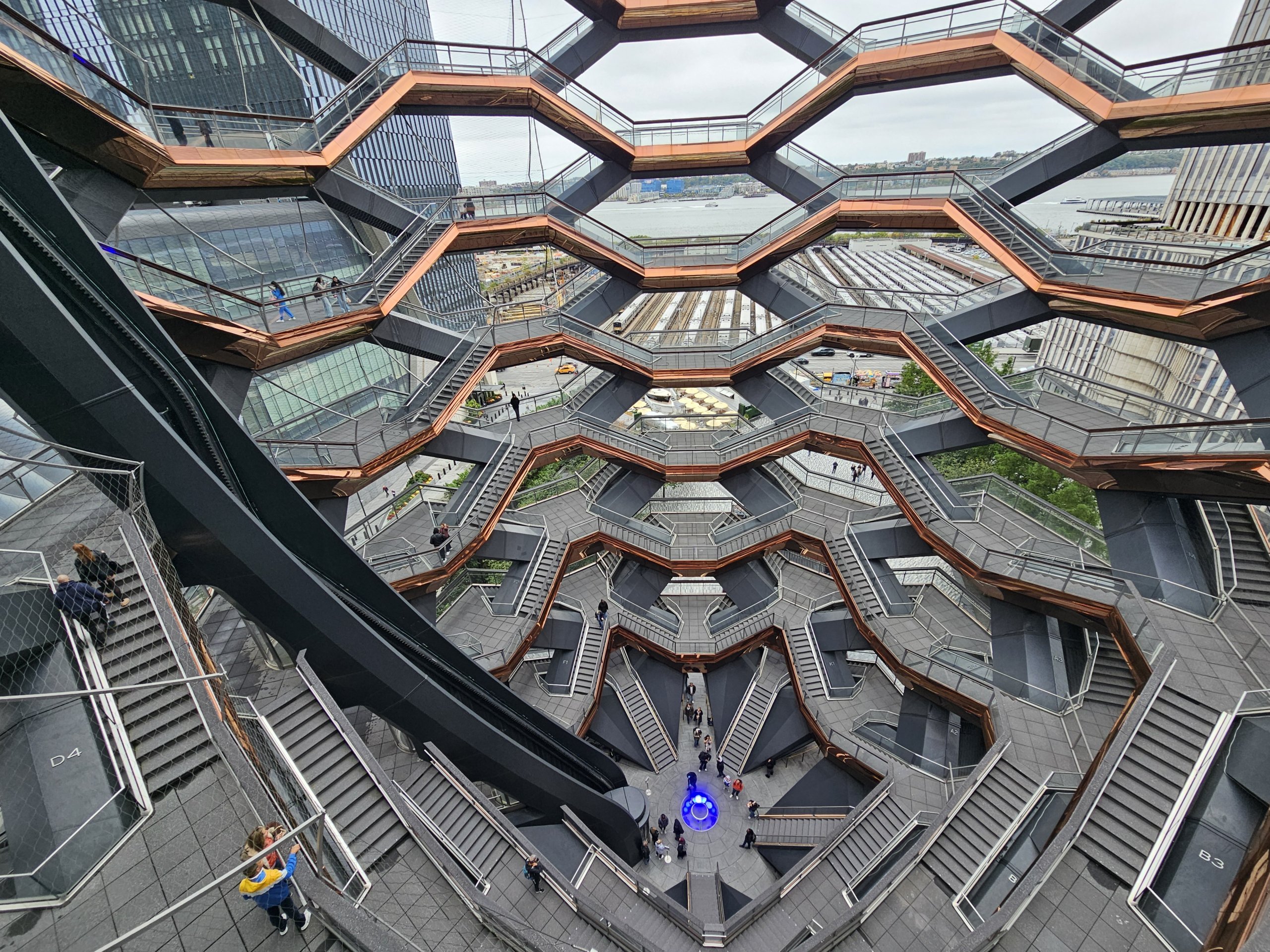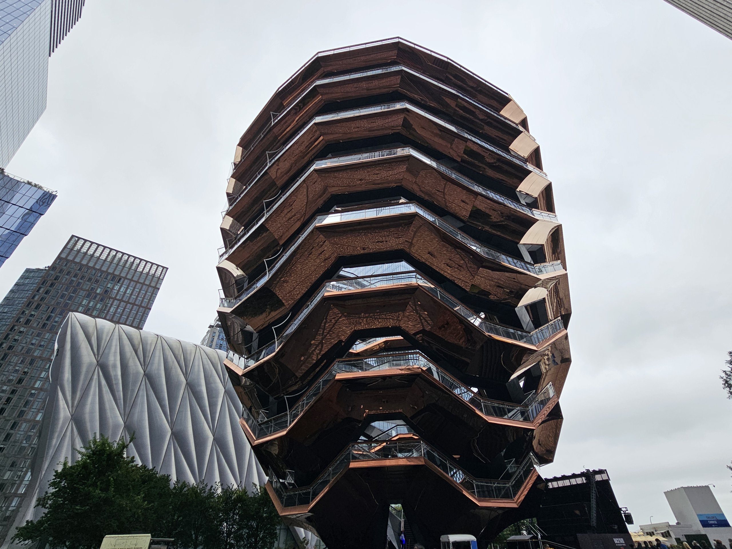 The Vessel er et kunstværk og en 46 meter høj struktur, der står i Hudson Yards-området under skyskraberen med den berømte udsigt til The Edge.