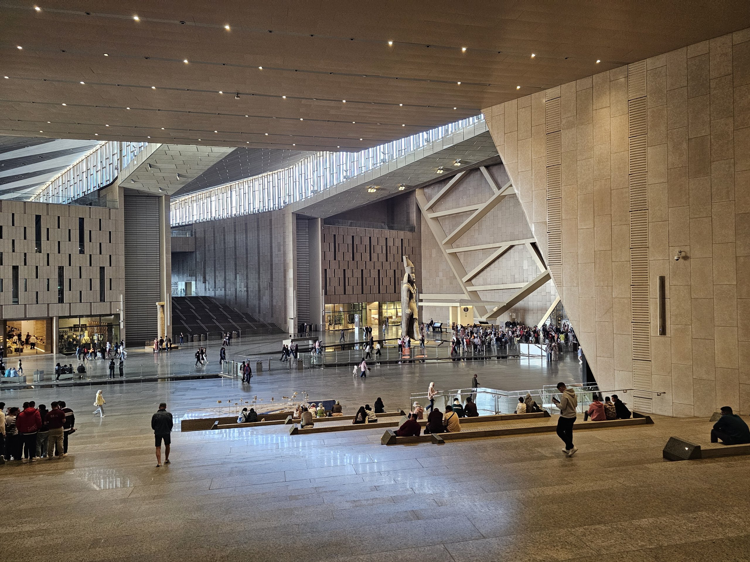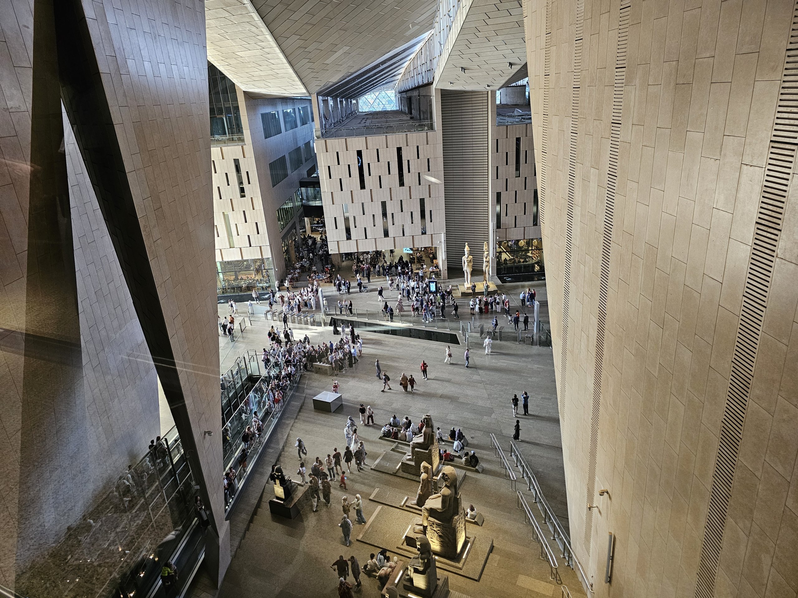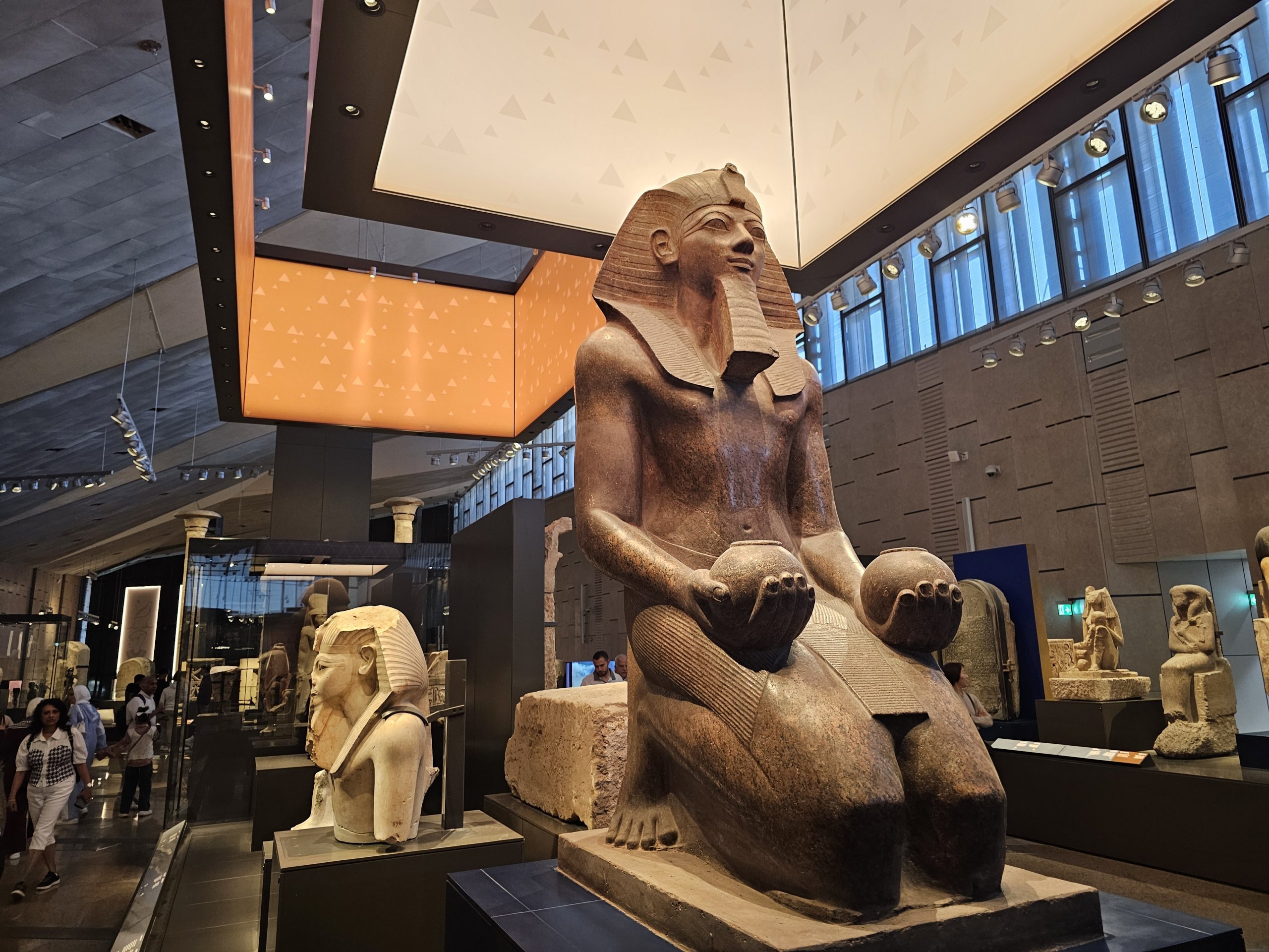 Efter Khufu-museet gik jeg tilbage til hovedbygningen og gik op ad den store trappe, som hovedsageligt er beklædt med forskellige statuer, til øverste etage.