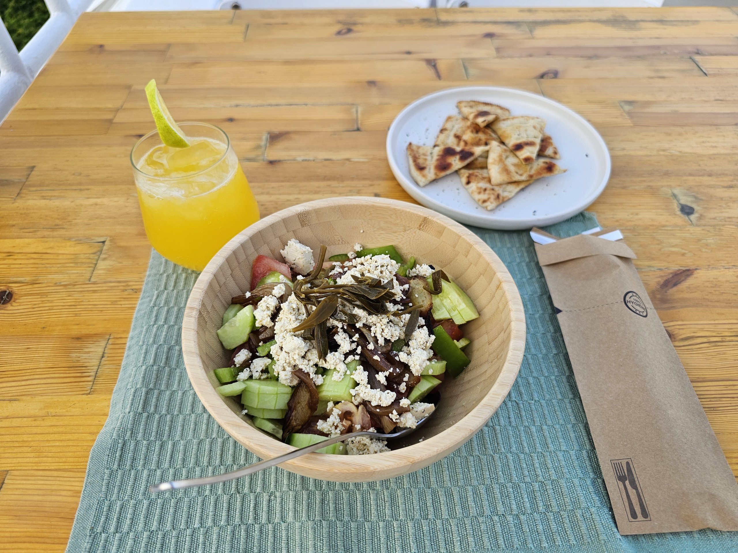 Græsk salat - den klassiske græske salat er allestedsnærværende og spises ofte i stedet for som tilbehør. Den kan siges at være meget lig den hakkede salat fra Bulgarien, bare mindre smagfuld. Den består af stykker af fetaost, tomater, peberfrugter, agurker, oliven og løg.