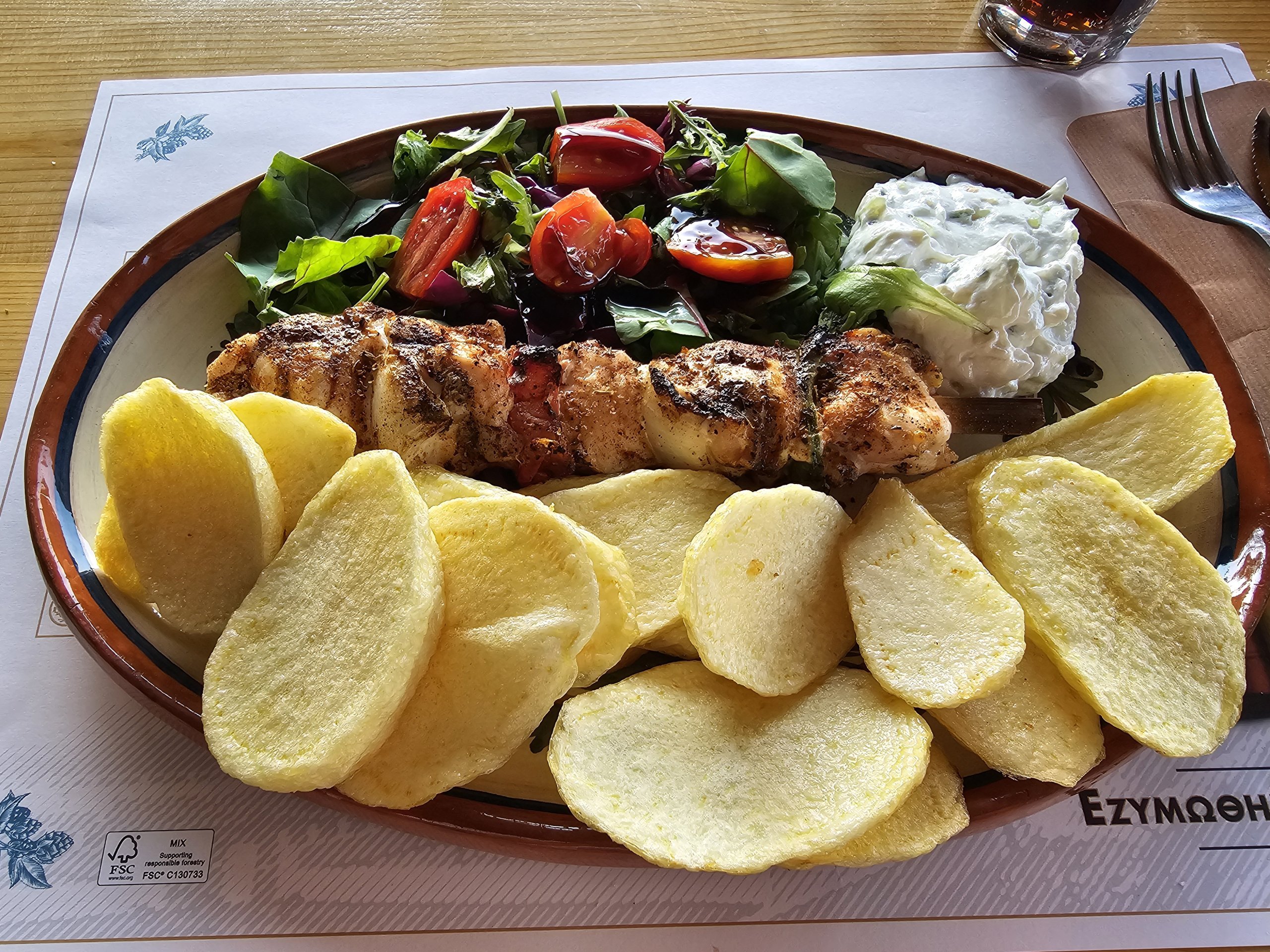 Souvlaki - efter gyros nok den mest populære græske fastfood, eller rettere sagt den mad, man kan få når som helst og hvor som helst fra de bedre restauranter til de mest nedslidte madboder.