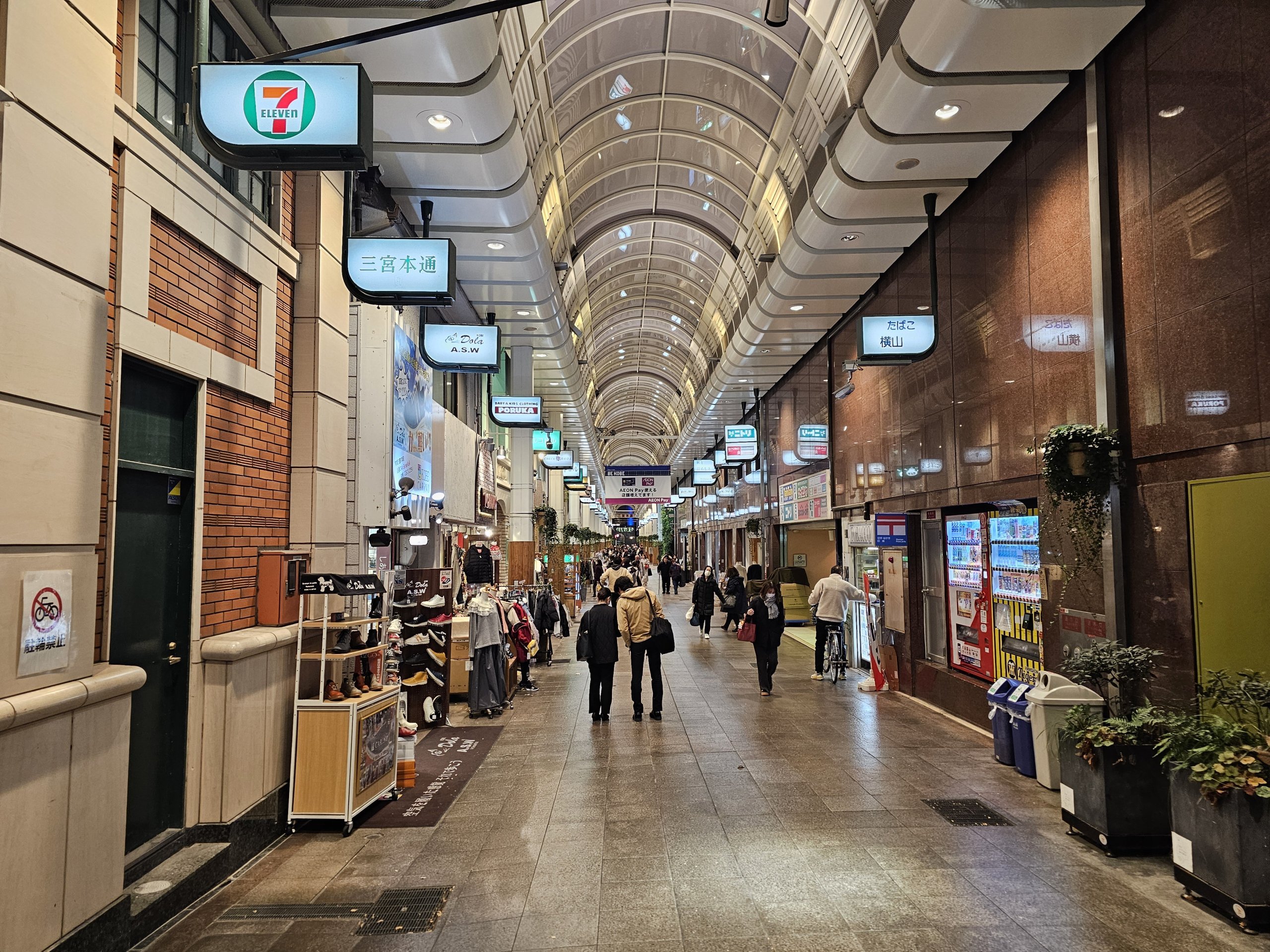 Både Sannomiya- og Motomachi-områderne er kendt for deres arkadegader - gågader med butikker og restauranter - og for at være let tilgængelige fra togstationerne.