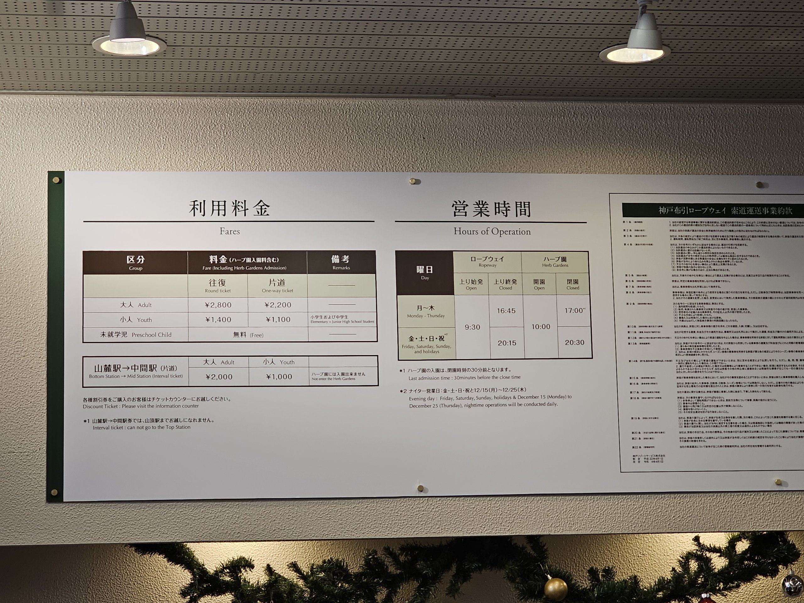 Detaljerede og opdaterede oplysninger på den officielle hjemmeside: kobeherb.com/da/hours-of-operation-and-fares.