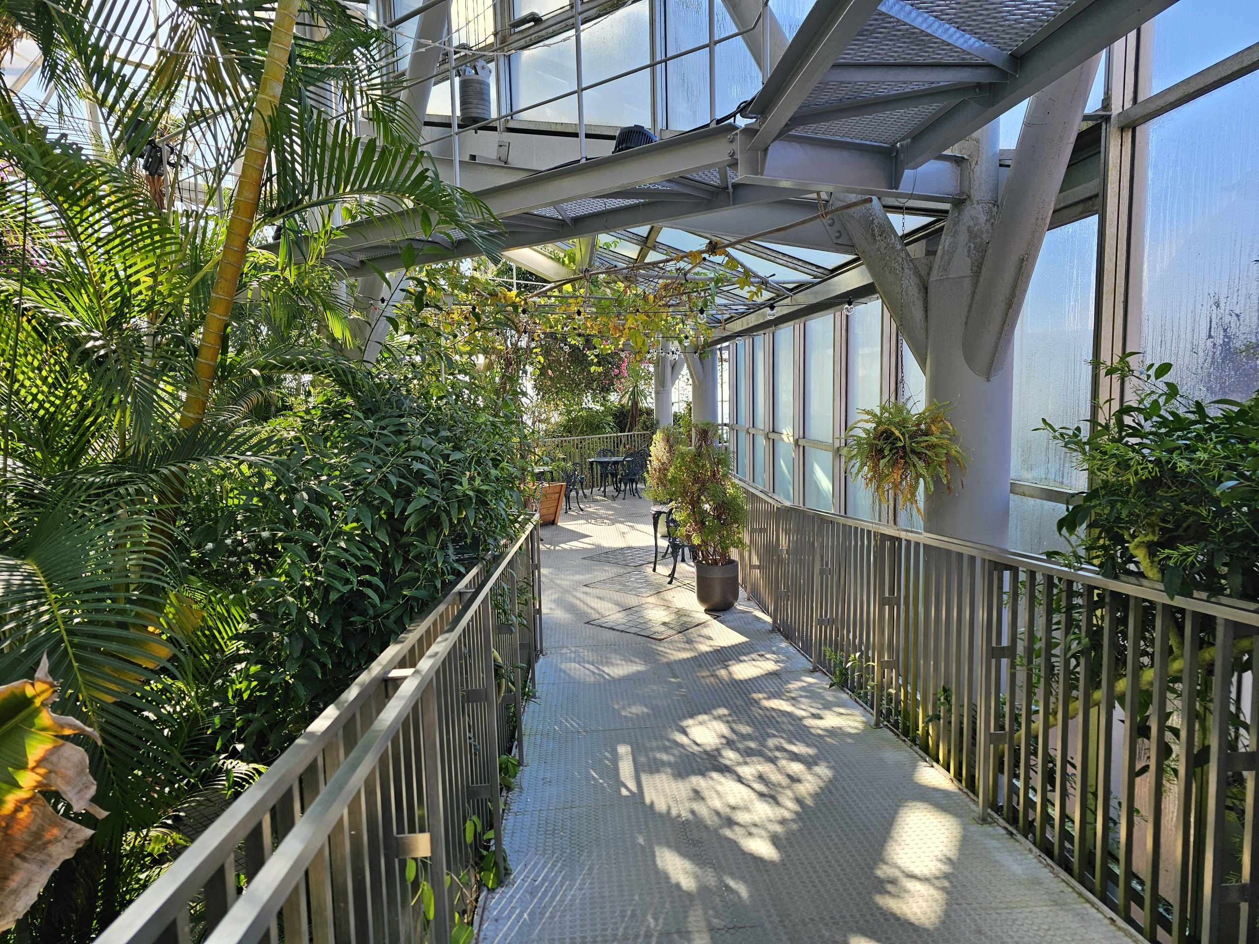 En svævebane fører dig op til toppen, og derfra går du gradvist ned gennem urtehaverne, 4-årstidshaven, udsigtspunkter og hvilesteder samt et stort drivhus med café og restaurant.