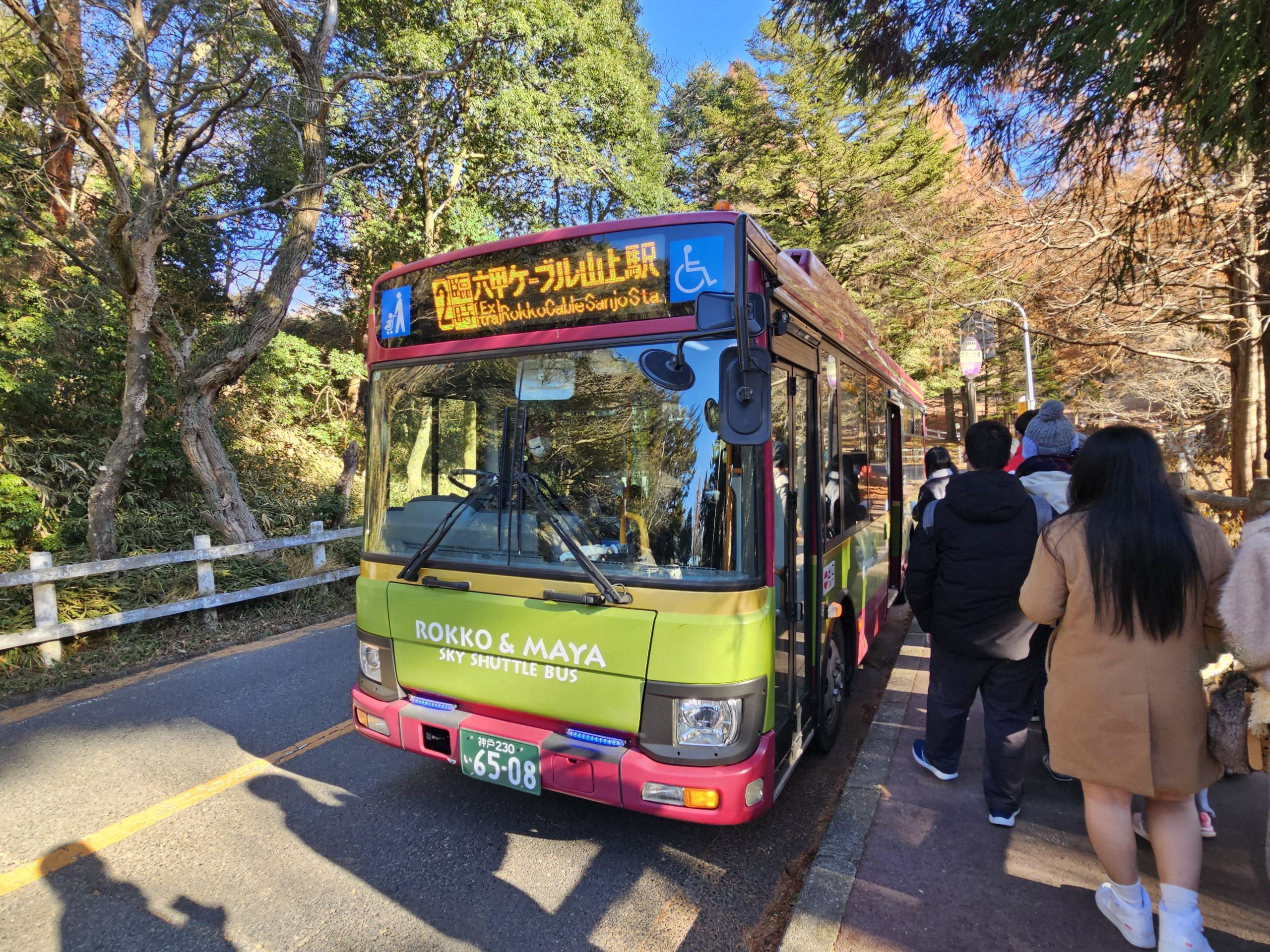 - Buslinje 18 fra Sannomiya til svævebanen (230 jpy) - kører hvert 30. minut.
