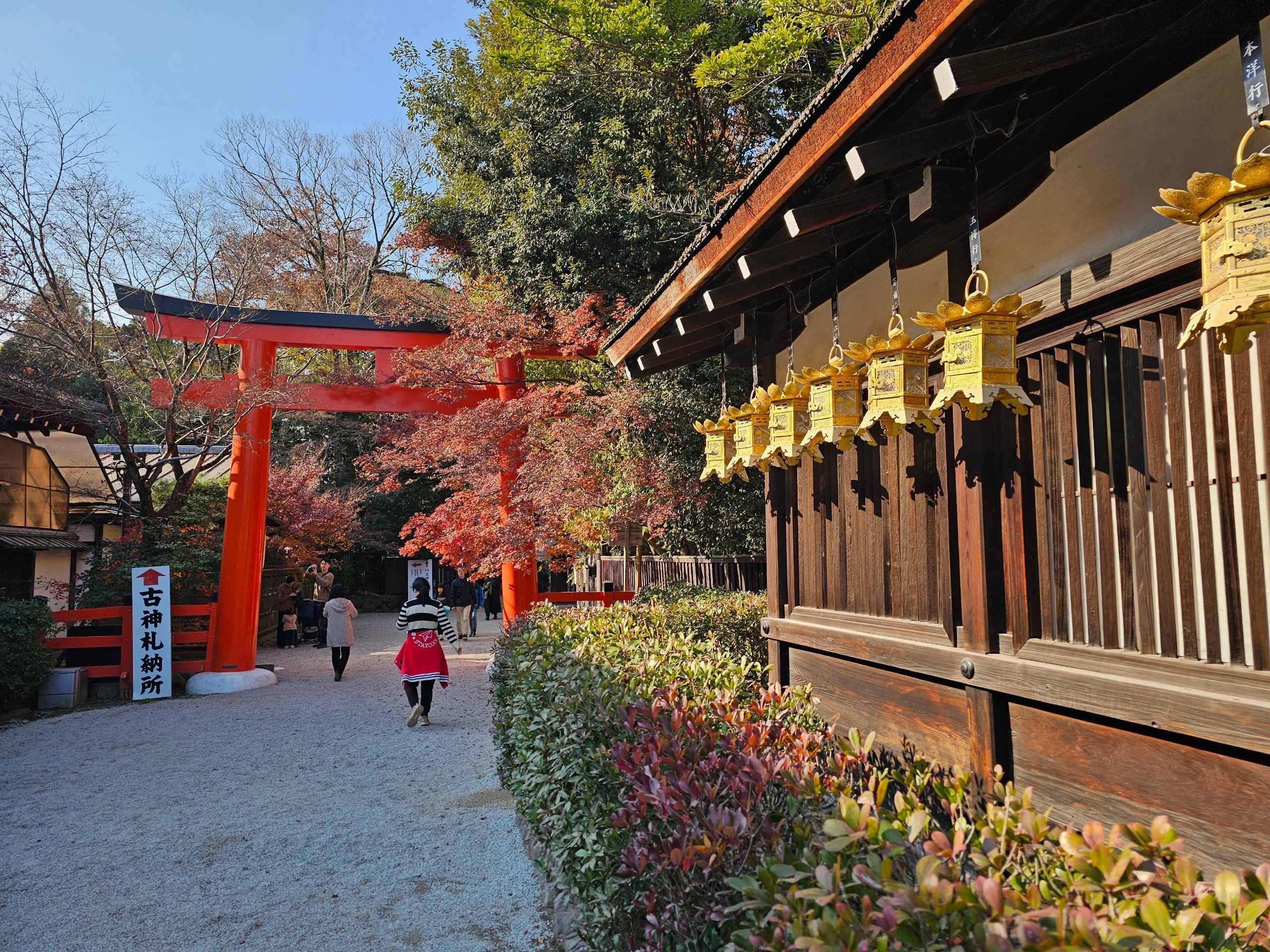 Den er kendt for sin smukke røde indgangsport, som er typisk for shinto-helligdomme og ikke buddhistiske templer.