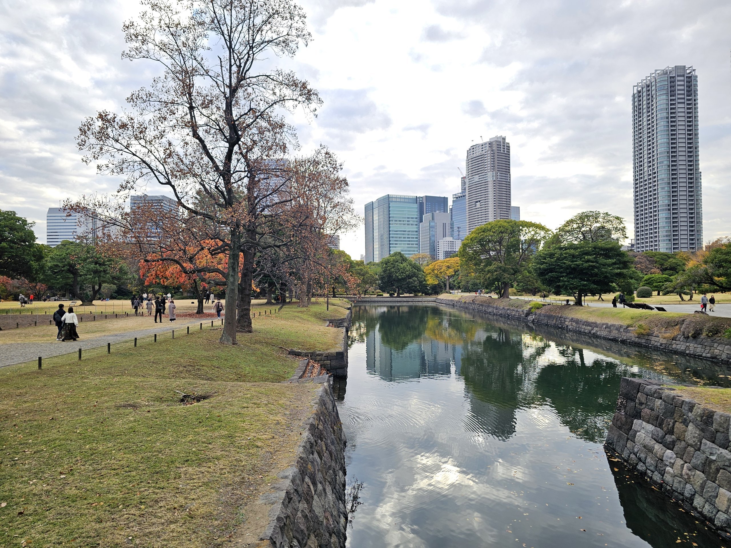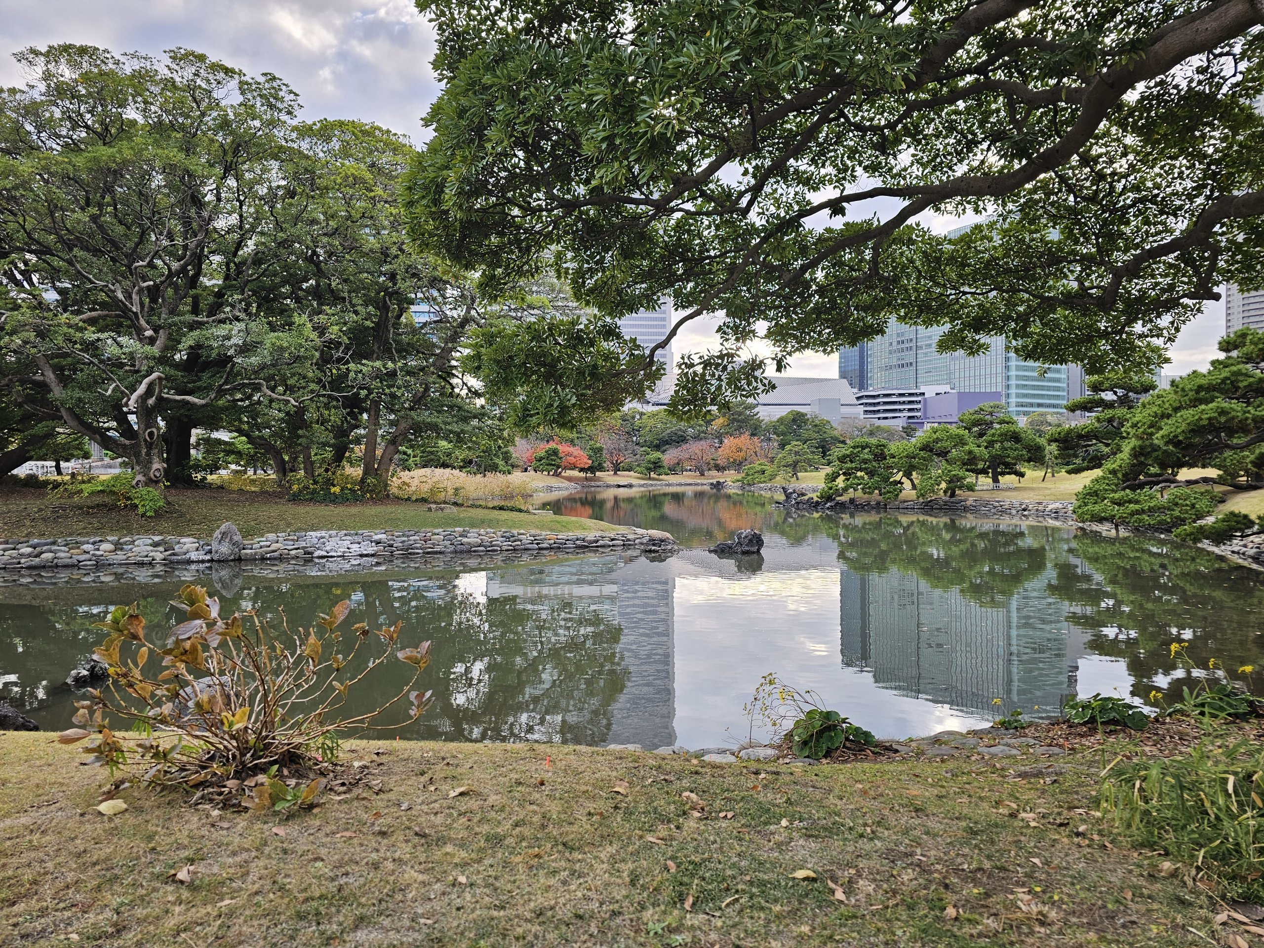 Hama-rikyu-haverne er blandt de smukkeste af deres slags i Tokyo. Denne have står i stærk kontrast til den omgivende verden, dvs. nye og gamle bygninger.