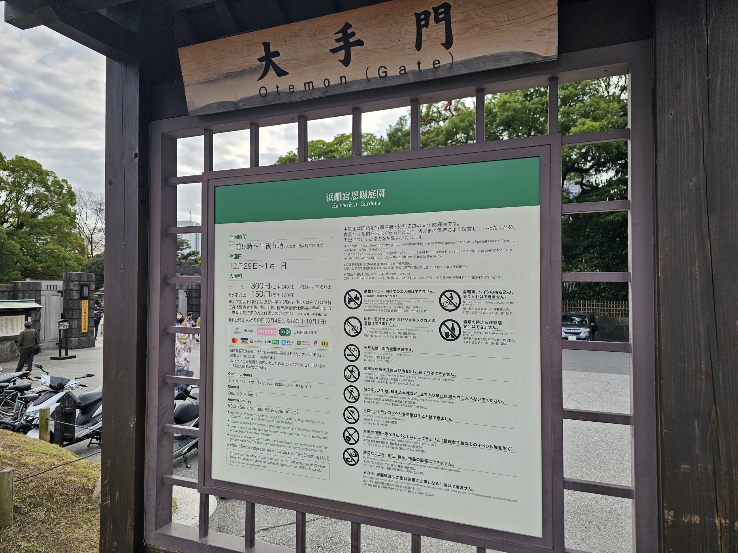 Der er en entré til Hama-rikyu-haven på 300 jpy.