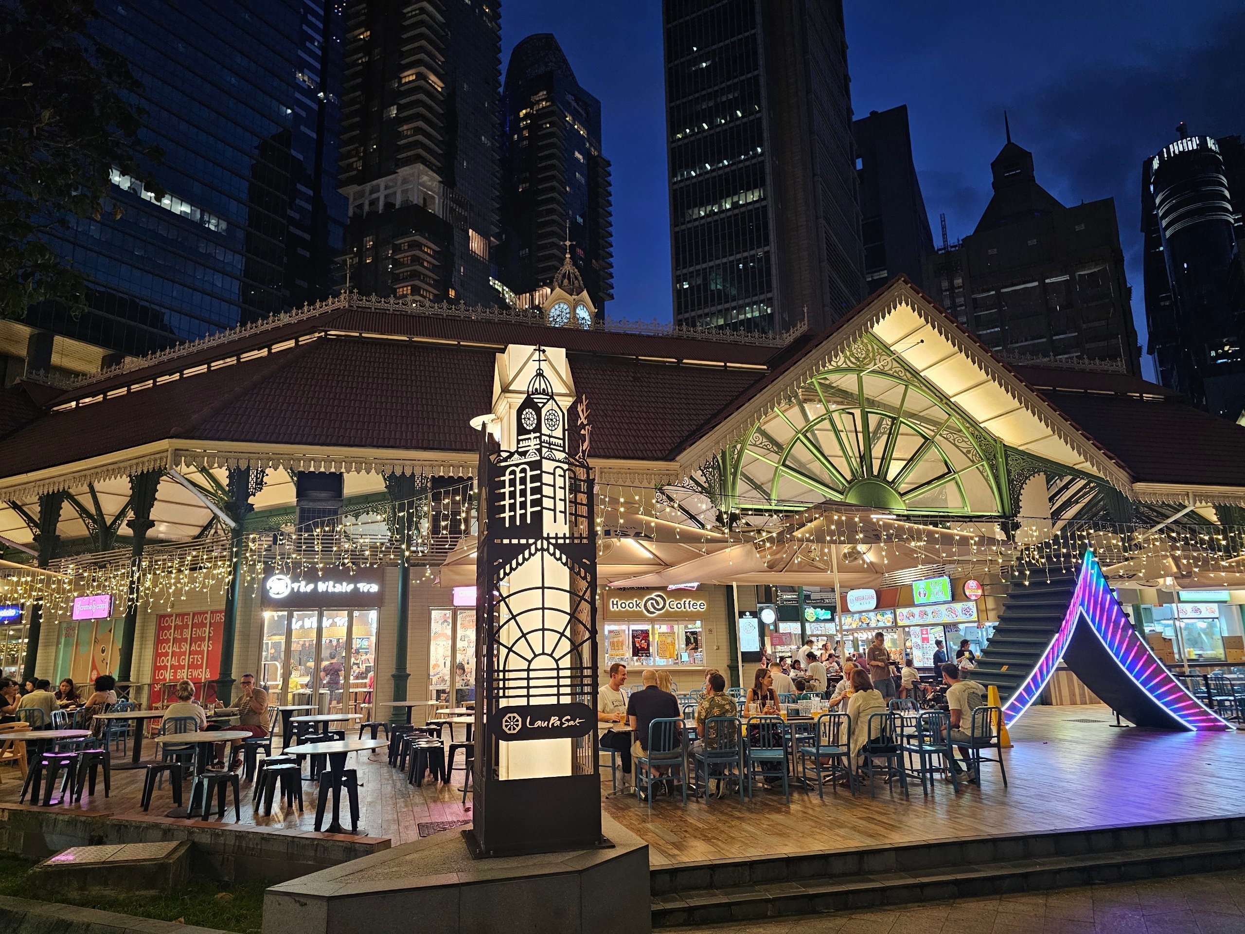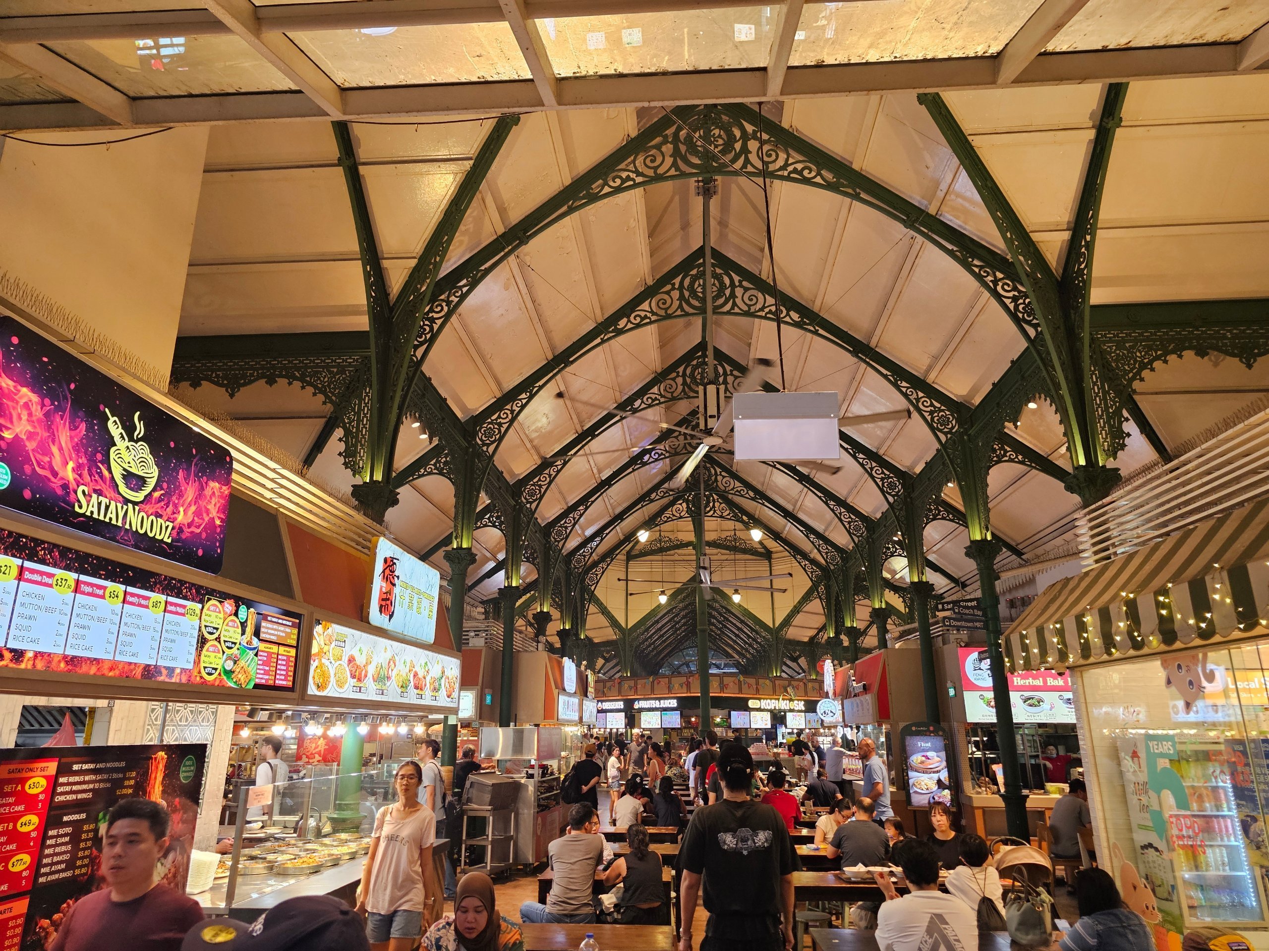 Det er denne arkitektur, der gør Lau Pa Sat til et af de mest fotogene hawkercentre i Singapore.