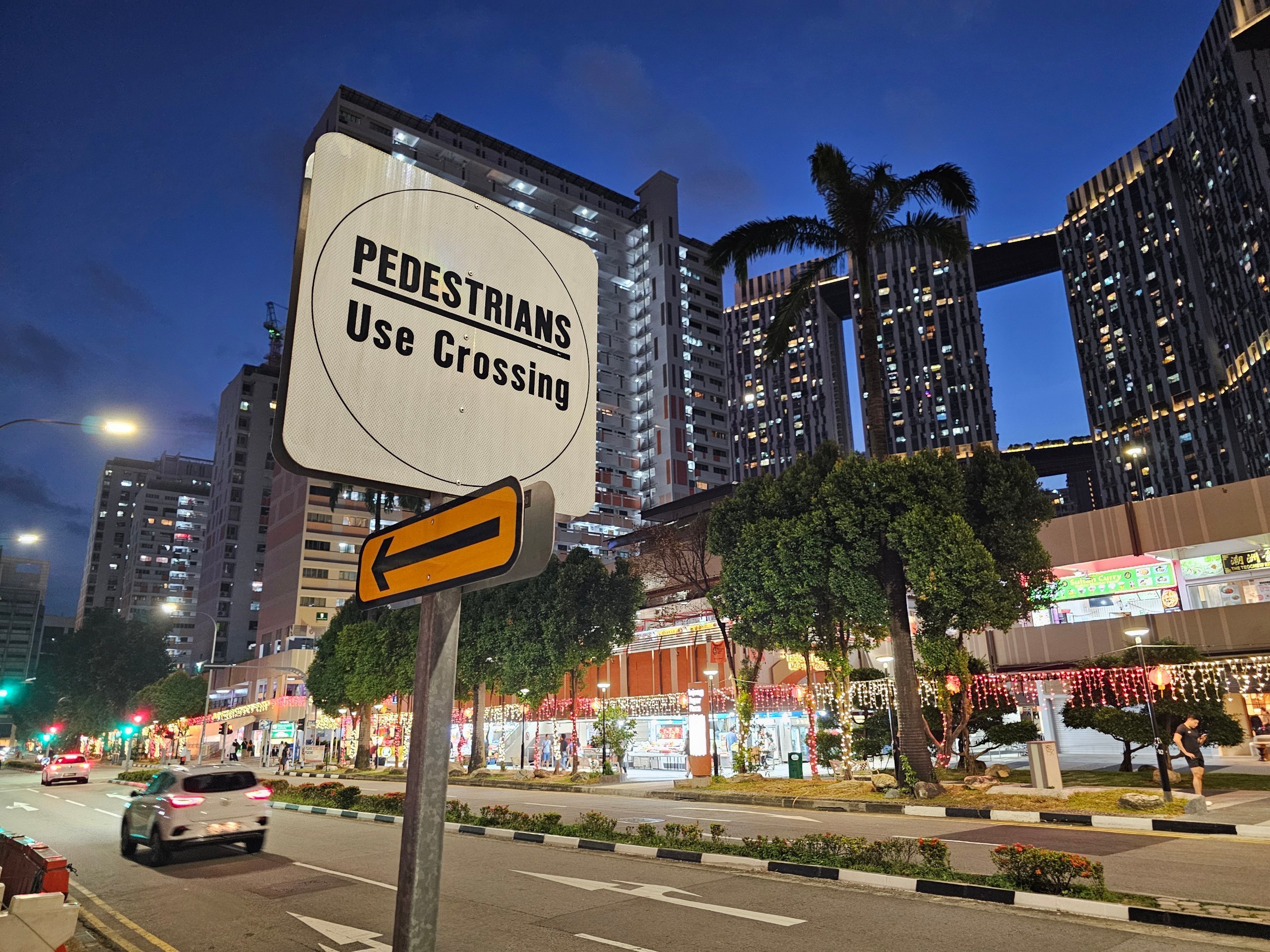 ❗ I Singapore er det ulovligt at krydse gaden uden for fodgængerfelterne under trussel om store bøder på op til flere hundrede Singapore-dollars. Men i virkeligheden så vi en hel del fodgængere, der krydsede gaderne uden for lyskrydsene.