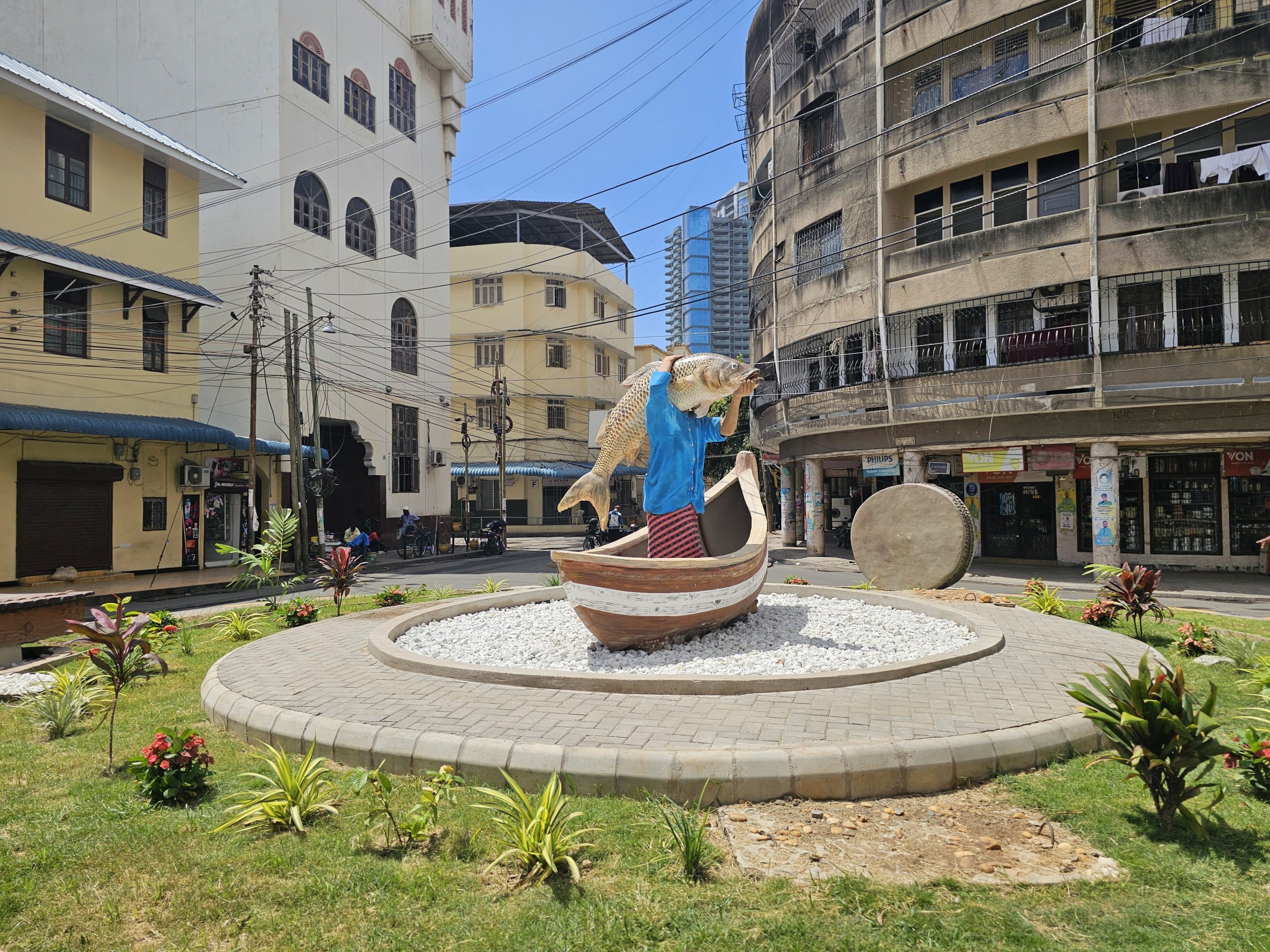 Mange af rundkørslerne har skæve statuer af det lokale liv - du kan f.eks. finde statuer af fiskere, kokosnødder og hajer.