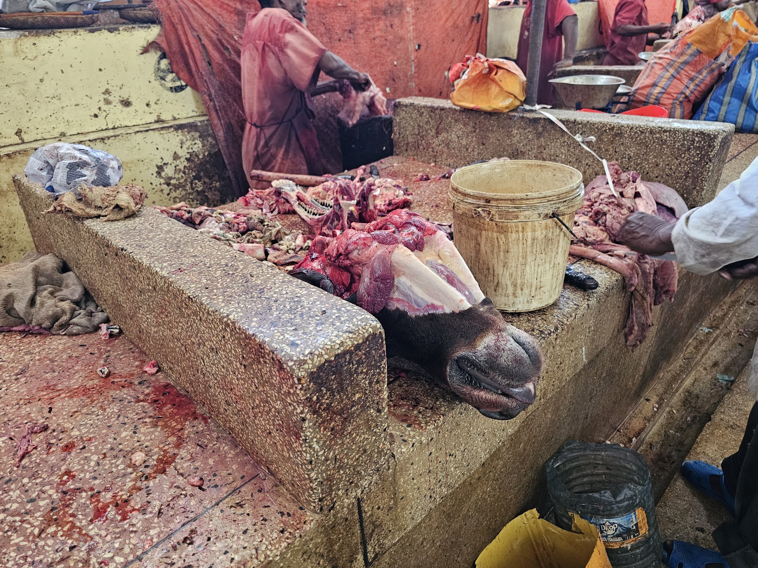 Hovedmarkedsbygningen indeholder et kød- og fiskemarked, som er et af de mest autentiske, jeg nogensinde har set! Det vil sige, indtil jeg besøgte Ferry Fish Market i Dar es Salaam et par dage senere.