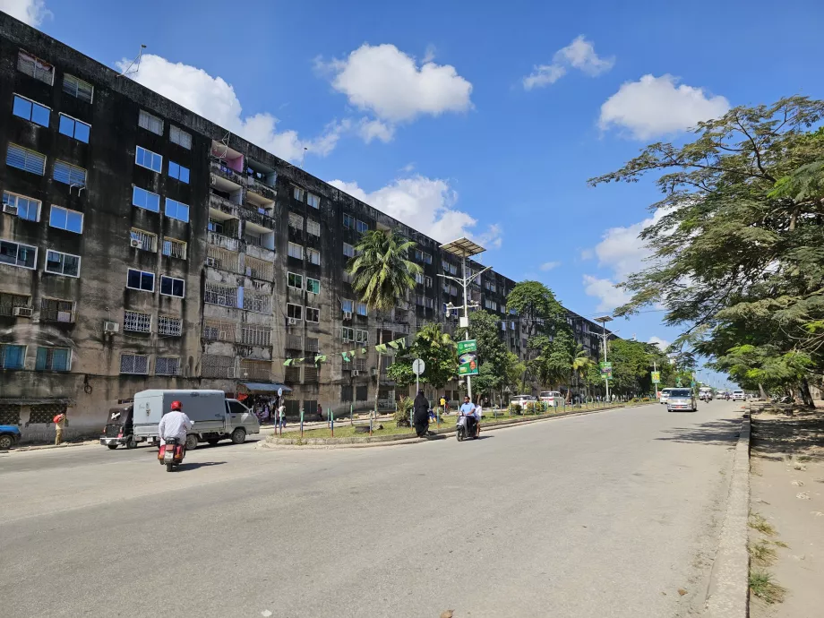 Museet kan nås ved at gå ned ad gaden mellem de største lejlighedskomplekser på hele Zanzibar.