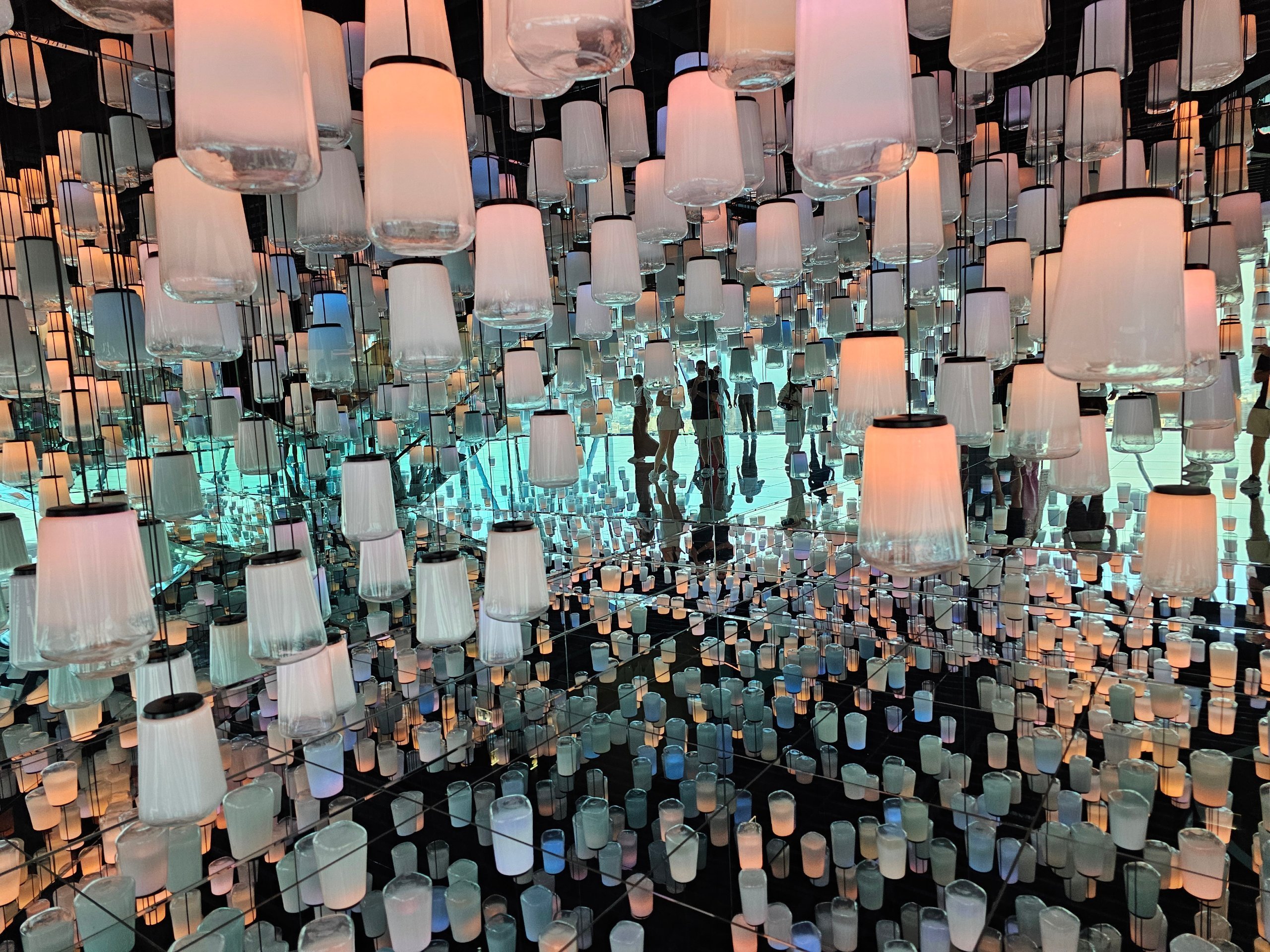 En installation inspireret af lanternetraditionen, hvor lyseffekter skaber en følelse af uendeligt rum.