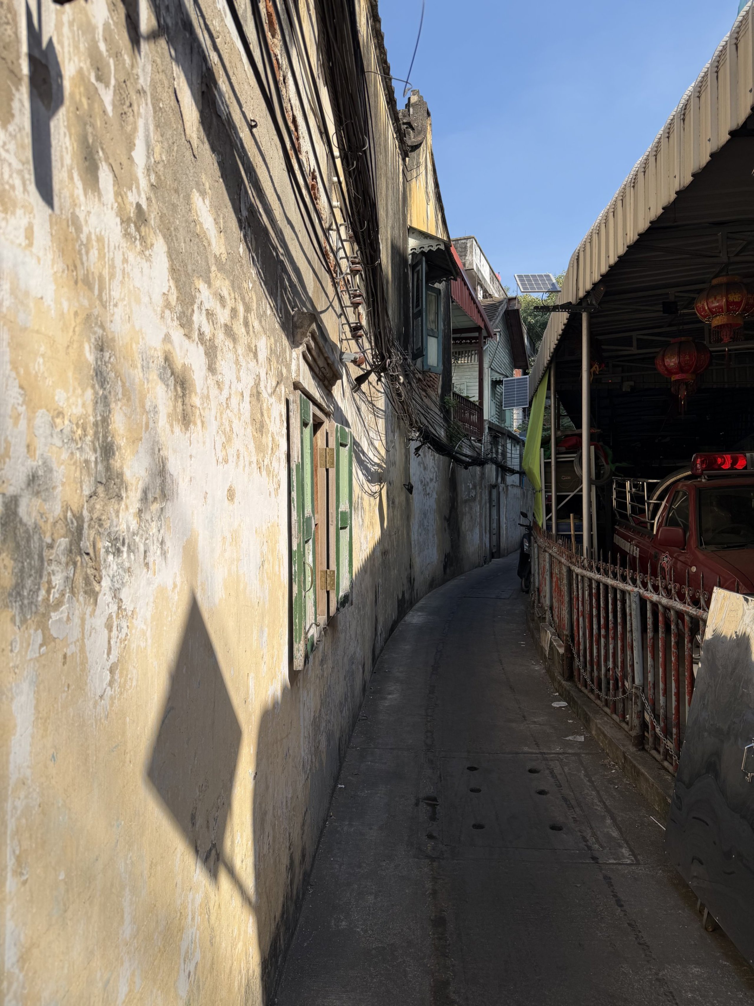 Smalle gader, rustne autoværksteder, gamle kinesiske huse, små helligdomme og caféer i tidligere lagerbygninger skaber et miljø, der føles mere som et filmset end et turistkvarter.