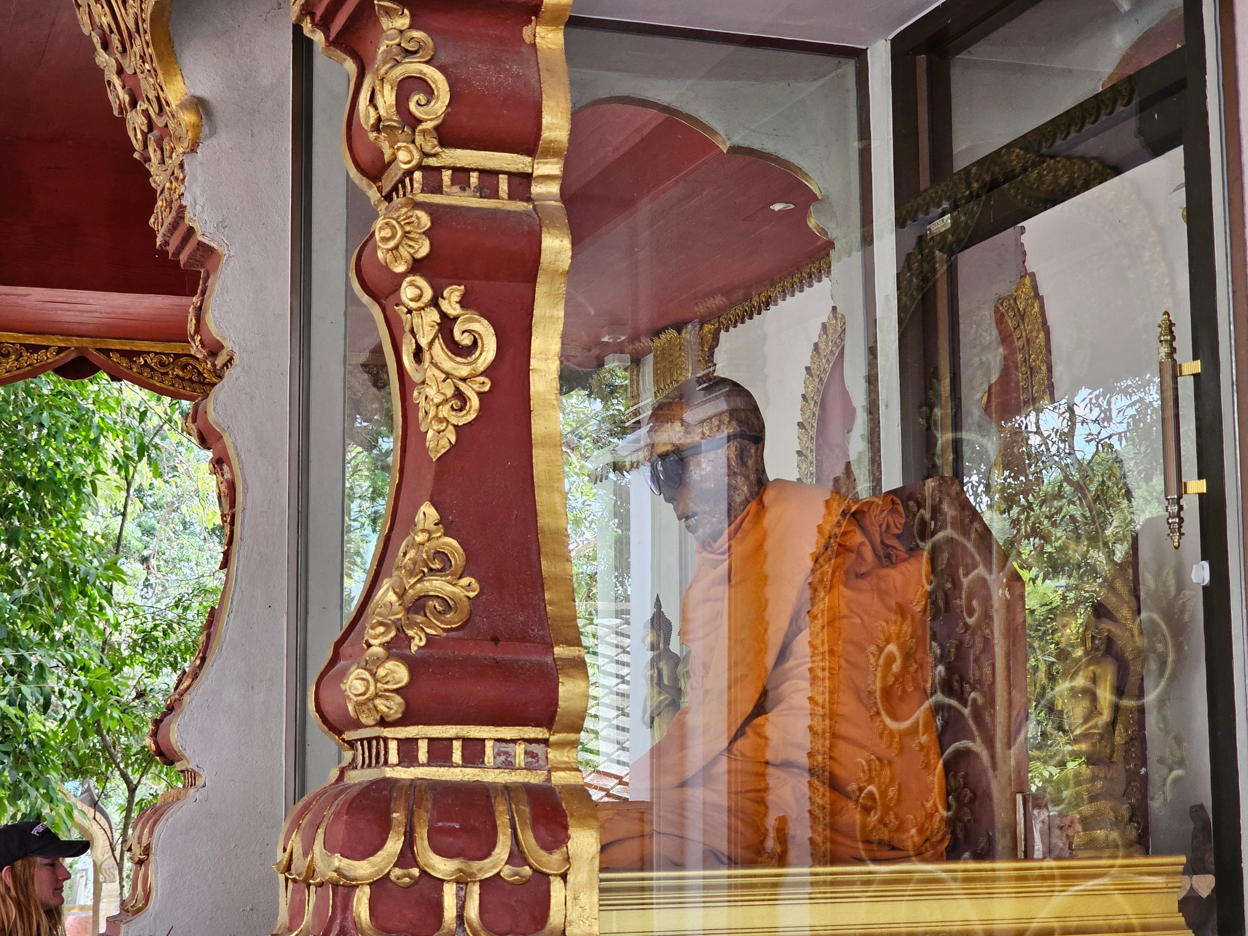 Indenfor findes den mumificerede krop af munken Luang Pho Daeng, som døde i en meditationsstilling - og som stadig er udstillet i en glaskasse.
