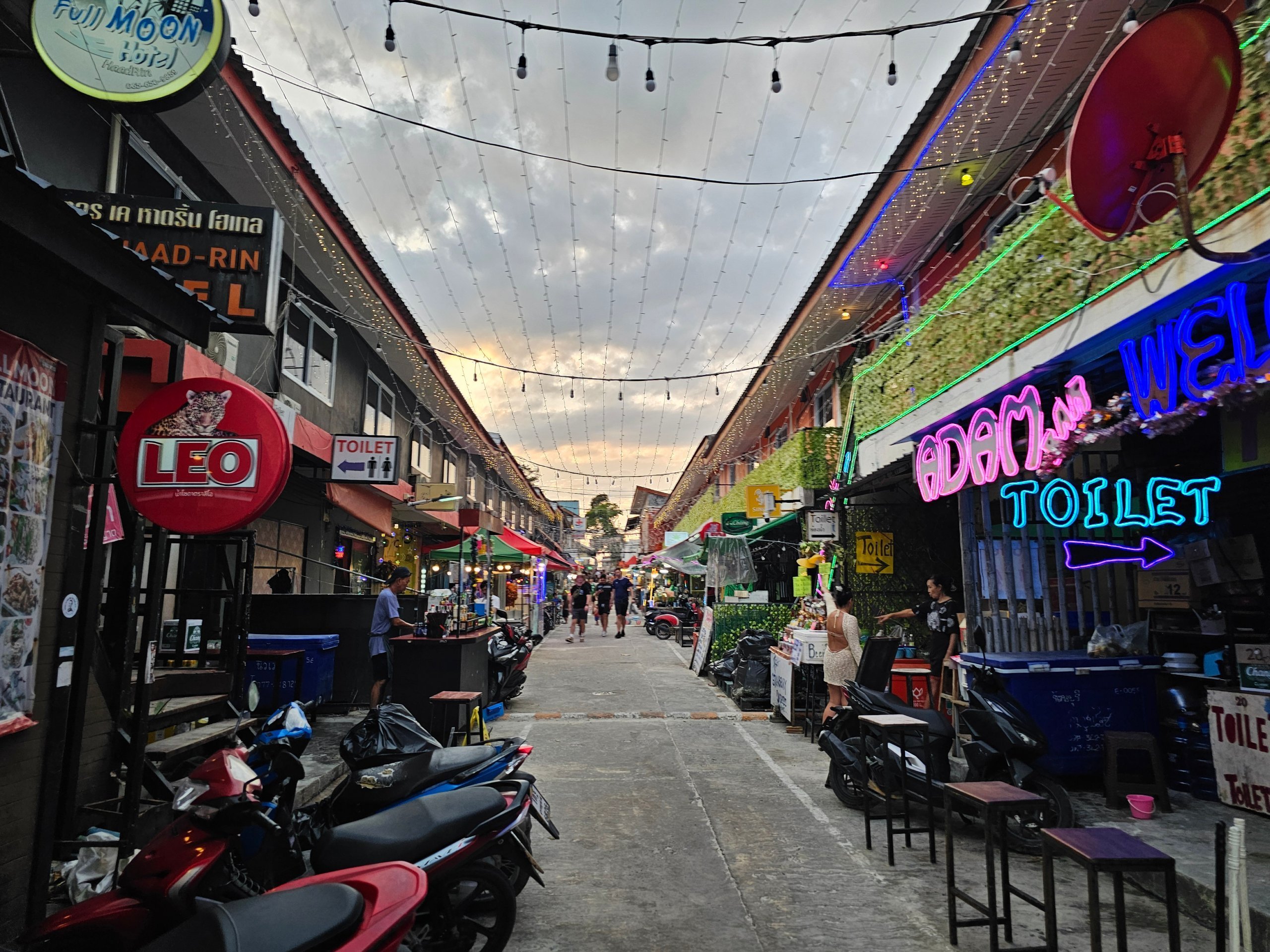 Haad Rin Walking Street er mest levende under fuldmånefesten, men uden for den tid er den åben.