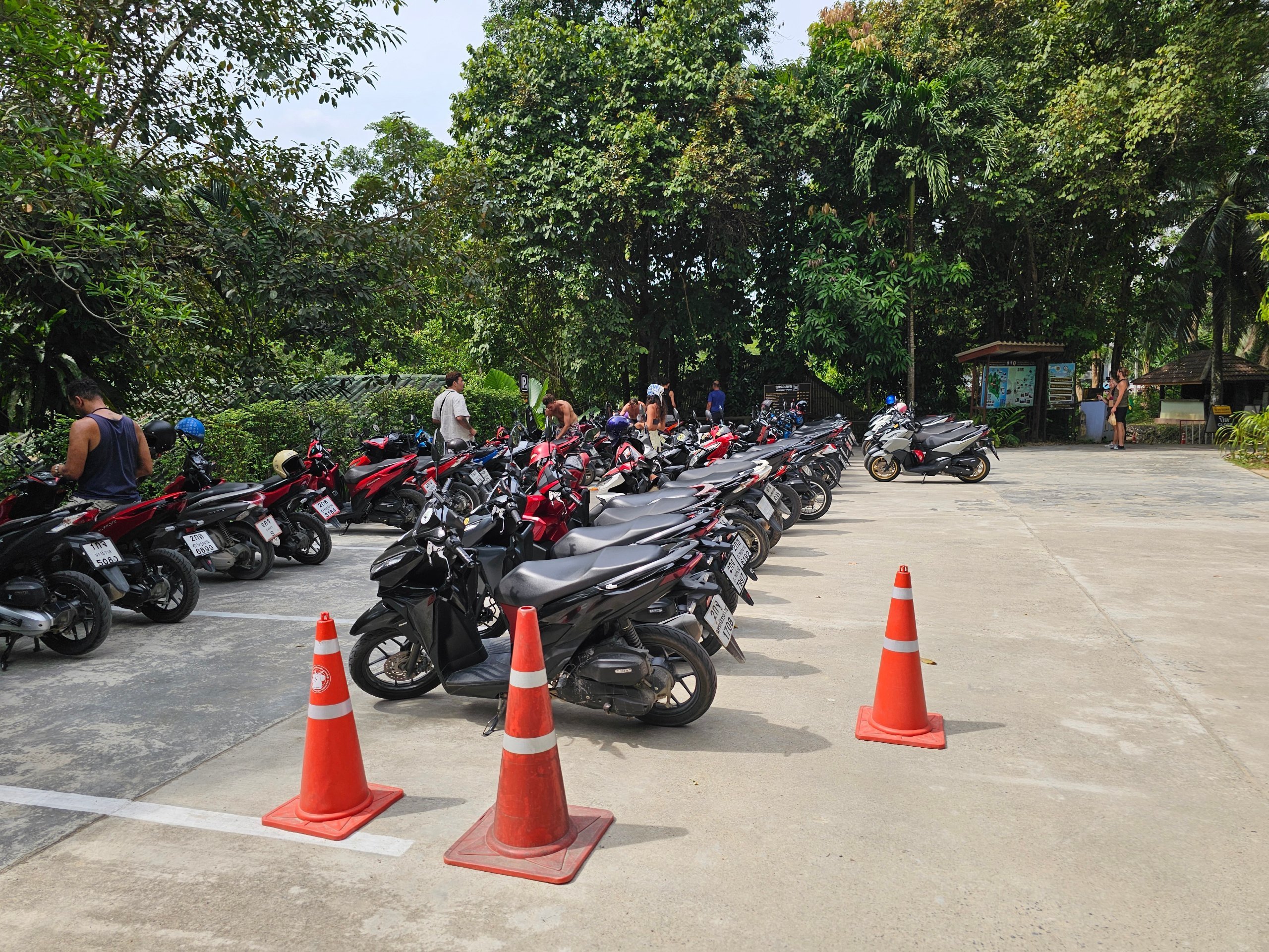 Ved indgangen er der en stor parkeringsplads til scootere (20 thb) og biler (30 thb). Du kan kun betale kontant.