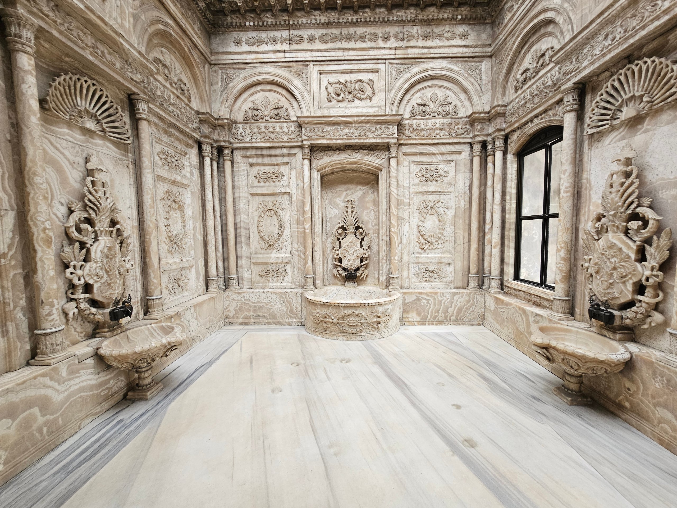 I dag har det nogle af de mest storslåede interiører i Istanbul nogensinde. Paladset er bygget lige ved Bosporus' bredder, og dets storslåede barokfacade spejler sig i vandet.