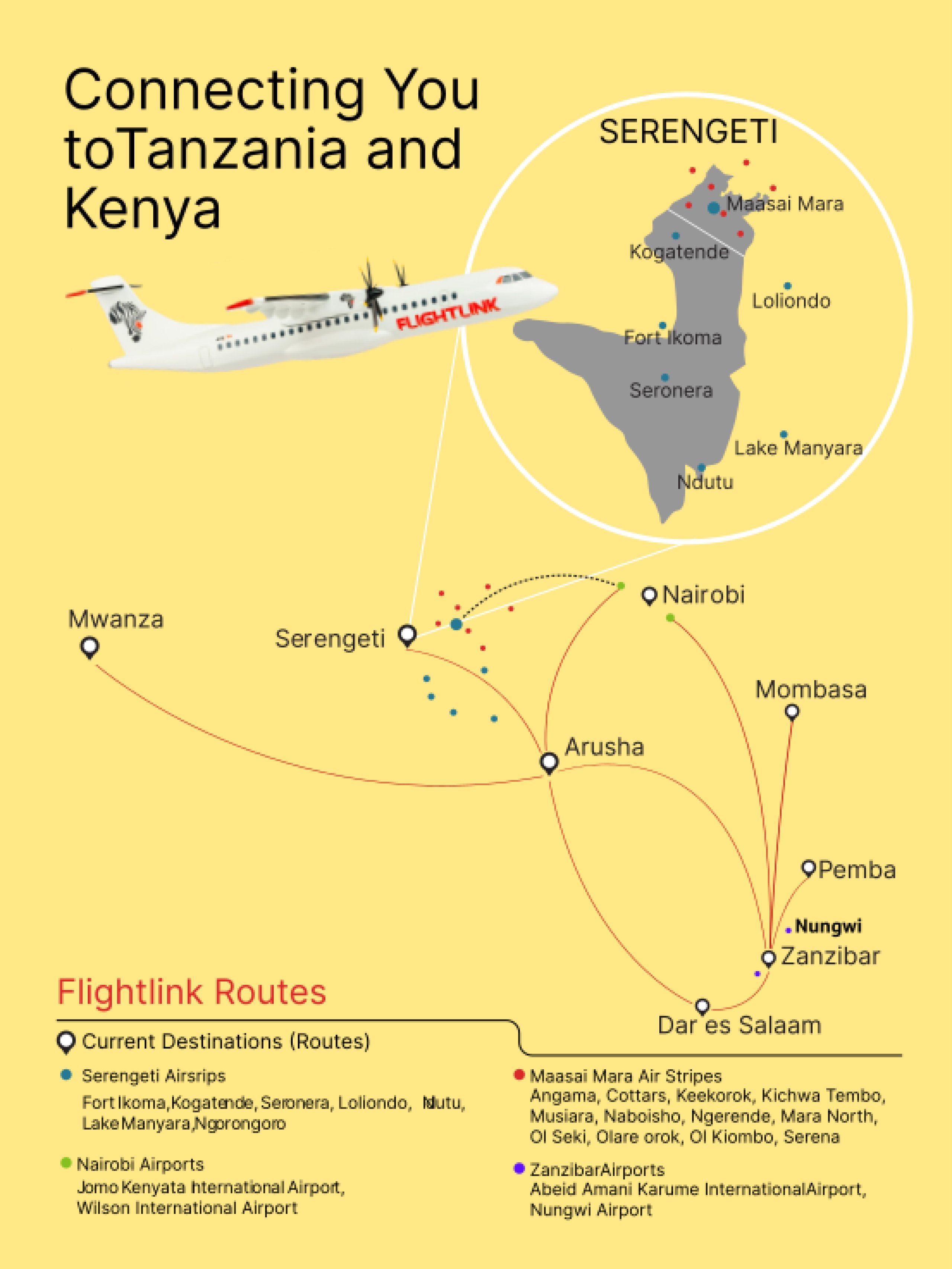 Flighlink fokuserer på at forbinde større turistdestinationer i Tanzania med den største by , Dar es Salaam.