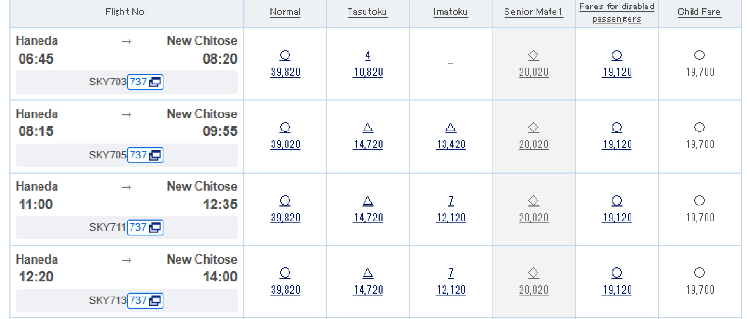 Flybilletter sælges normalt på den officielle hjemmeside skymark.co.jp.