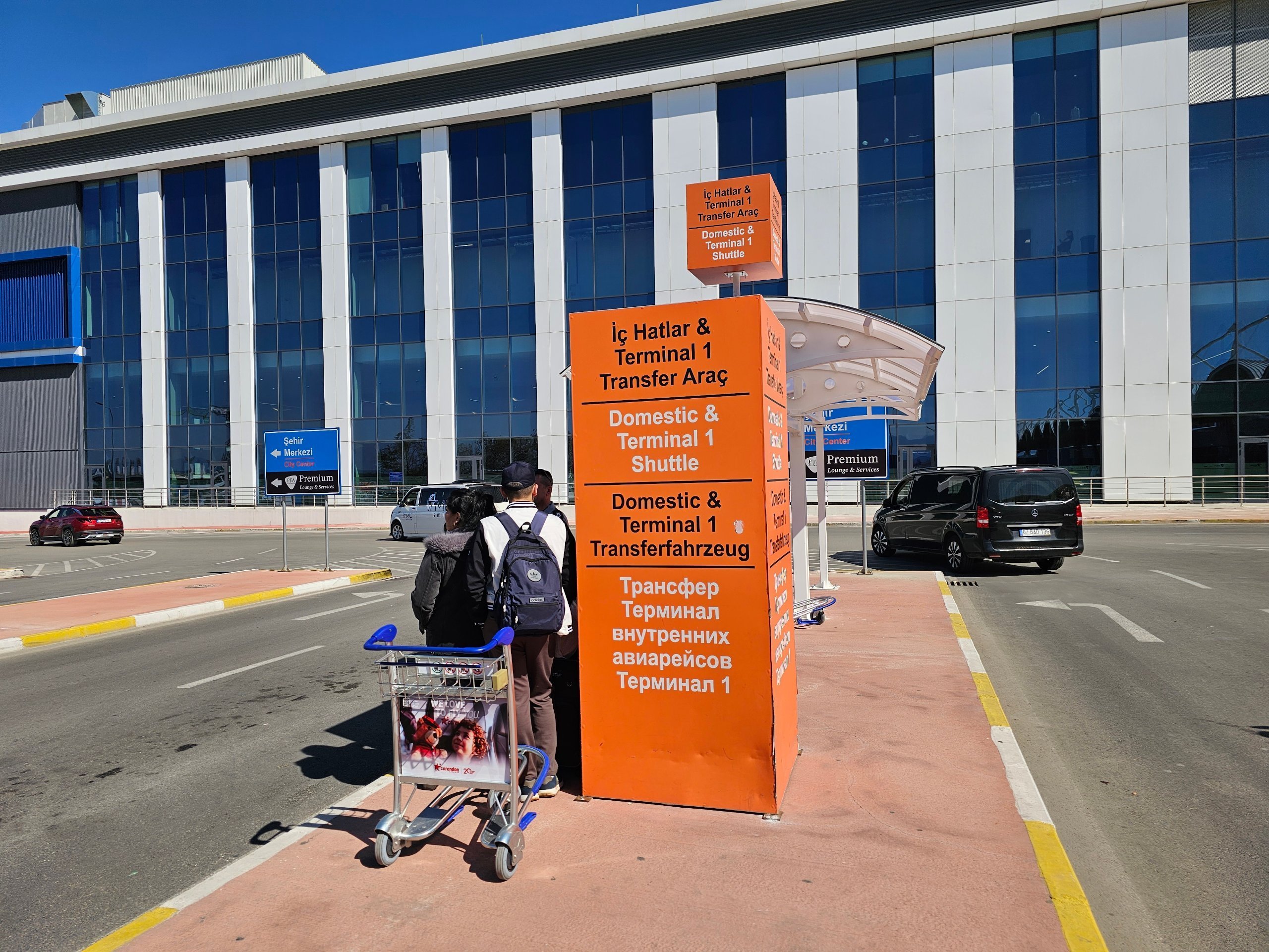 Antalya Lufthavn har 2 terminaler, som kaldes T1 og T2.