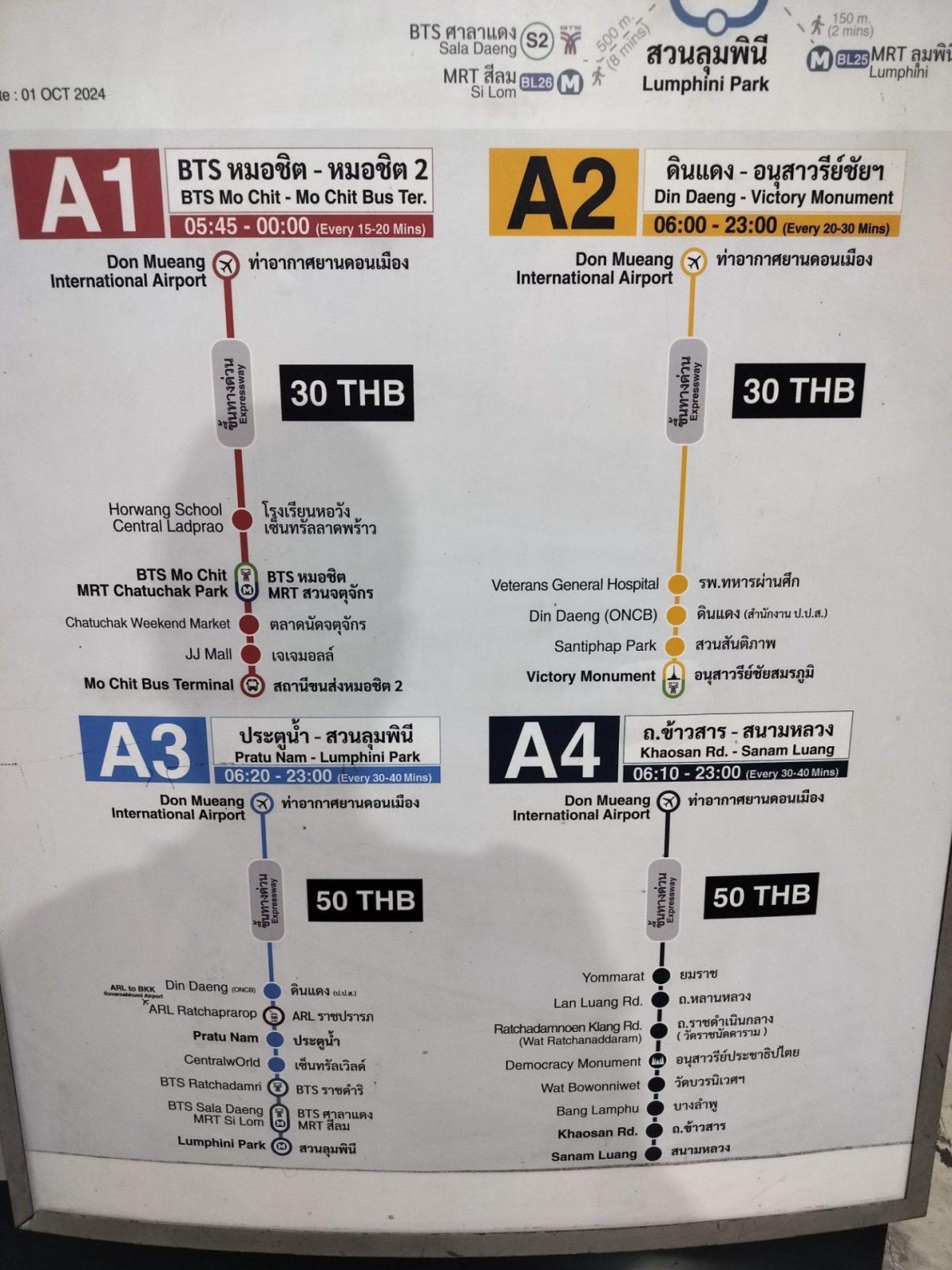| Bus A1 | Mochit busstation Chatuchak Park |