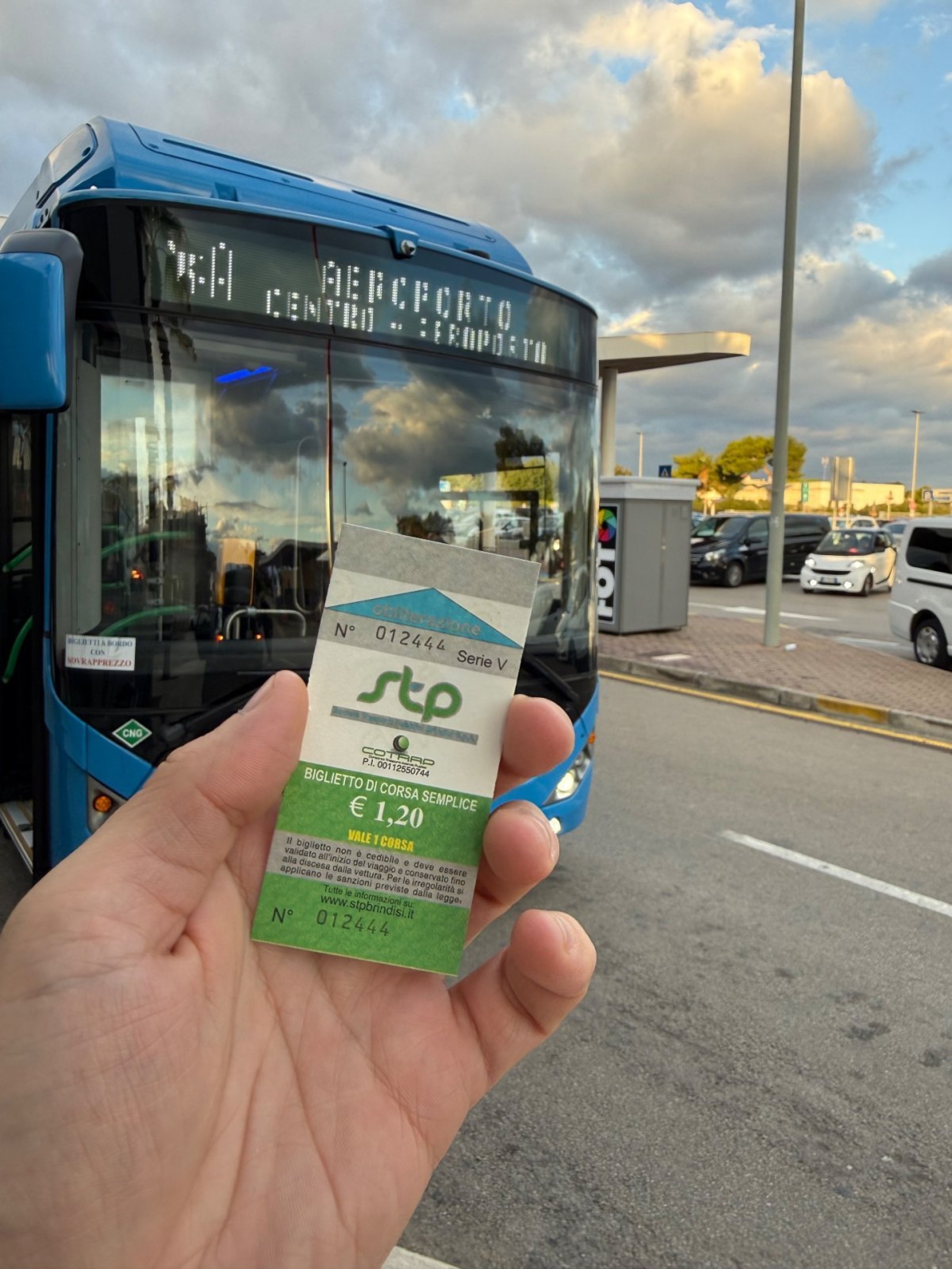 Fra lufthavnen kører Pugliairbus-busser i samarbejde med Marozzi i gennemsnit 5-8 gange om dagen til både Lecce og Taranto.