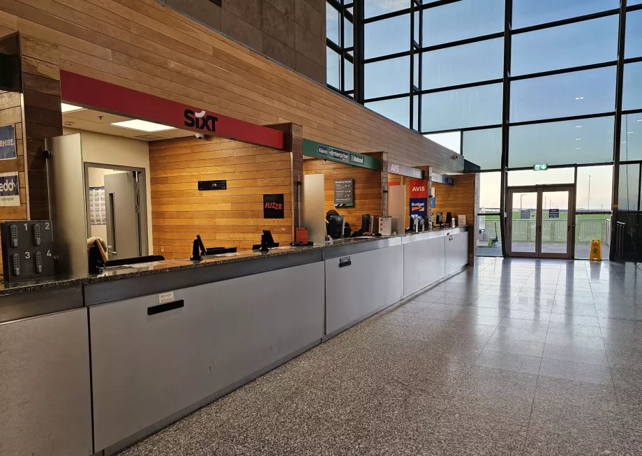 Der er afdelinger af mange store udlejningsfirmaer i ankomsthallen.