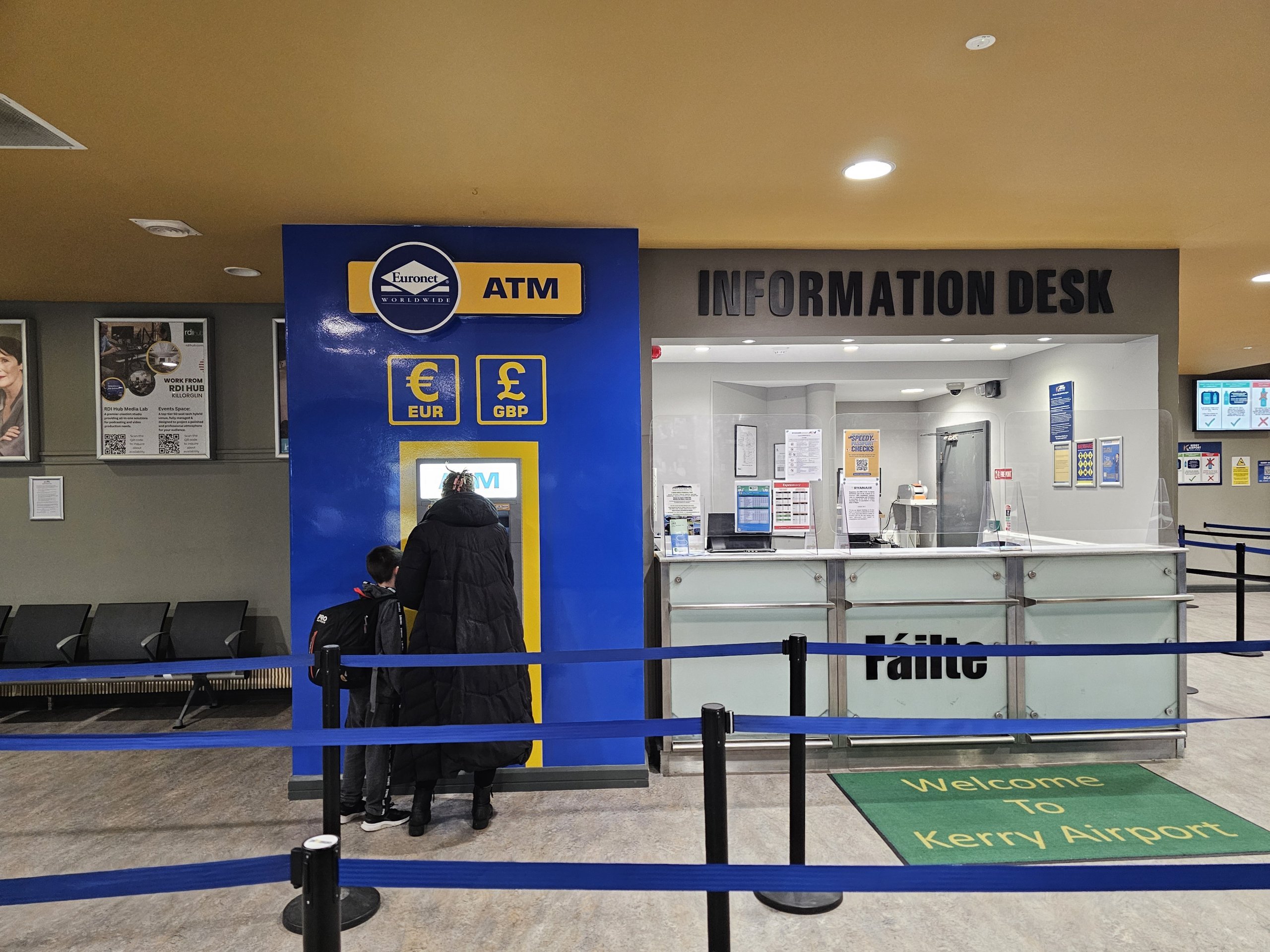 Der er ingen bagageopbevaring eller automatiske skabe i Kerry lufthavn.